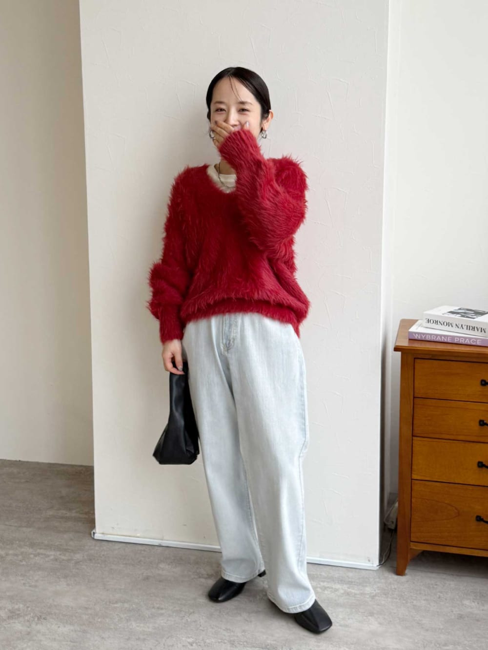 \お得な【TIME SALE】開催中!/ reca ▶長毛フェザーヤーンVネックニットプルオーバー ▶飾り釦付き裏ゴムストレートデニムパンツ instagram @reca.zozotown