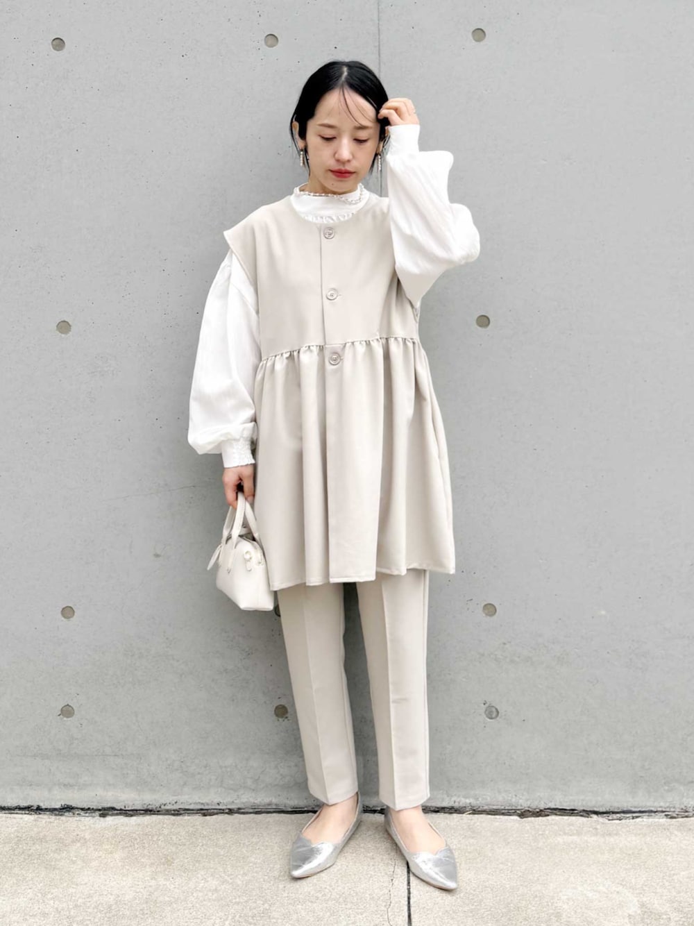 recastaff(reca)のスーツセット「ペプラムベスト×テーパードパンツ2点セット」を使ったコーディネート