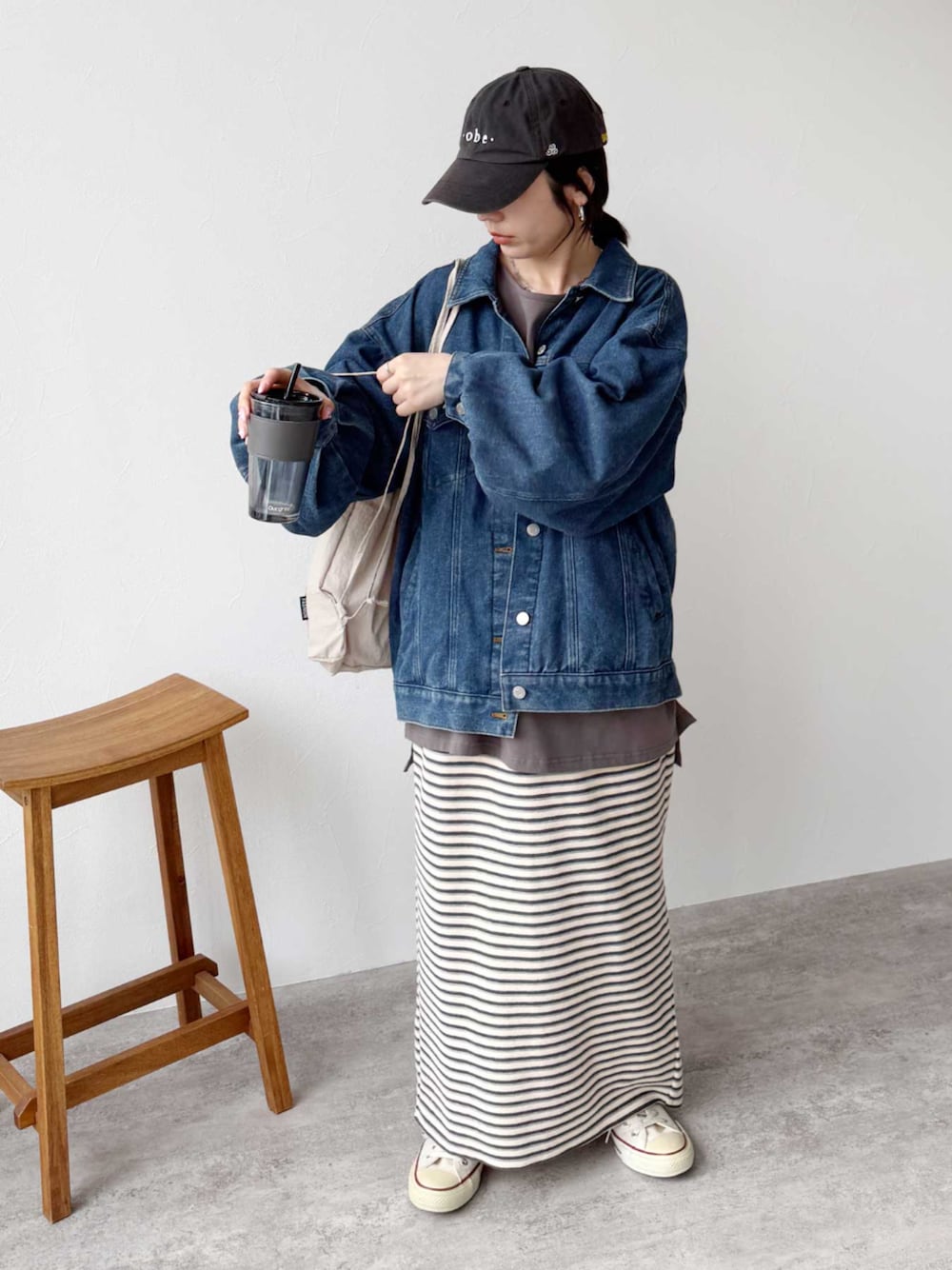 reca ▶オーバーサイズデニムジャケット ▶パイルボーダースカート instagram📷 @reca.zozotown