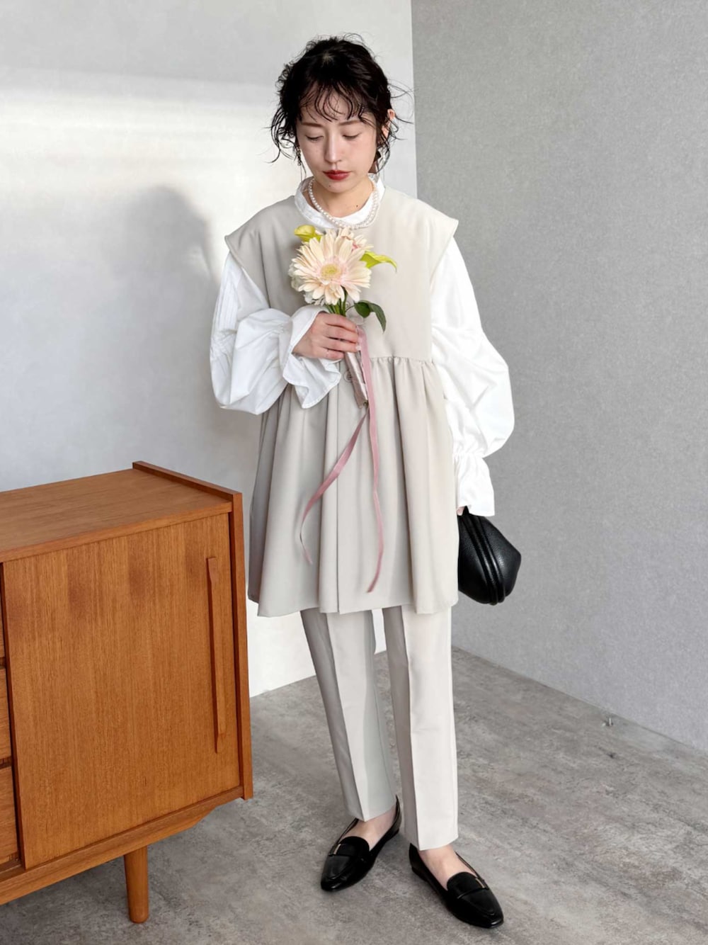 reca ▶ペプラムベスト×テーパードパンツ2点セット ▶キャンディ袖シャツ instagram📷 @reca.zozotown