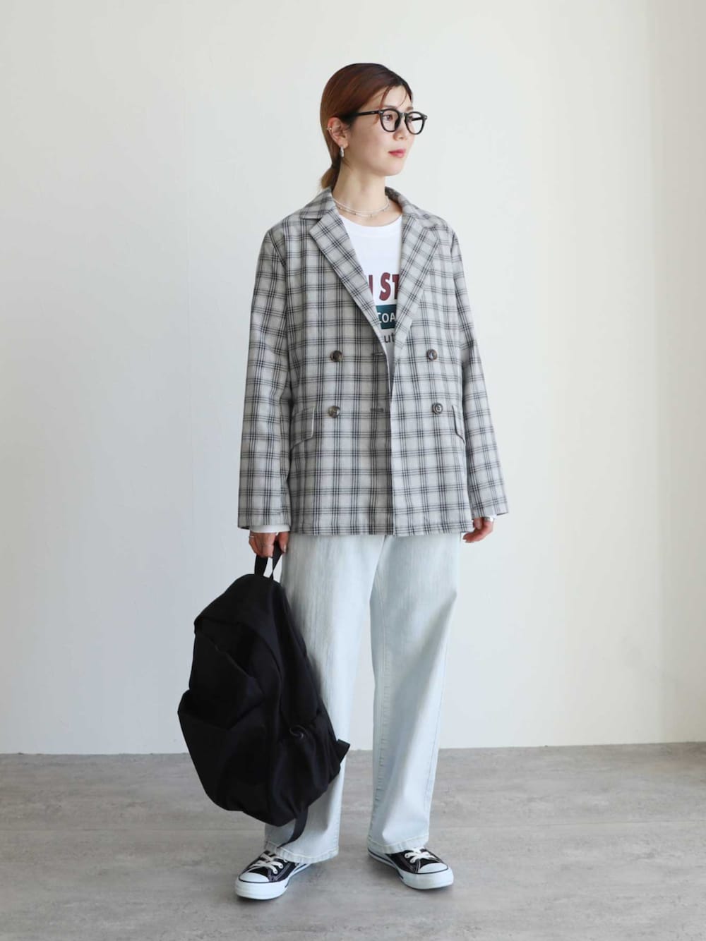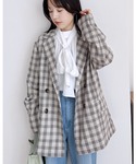 reca ▶チェック/ダブルテーラードジャケット ▶飾り釦付き裏ゴムストレートデニムパンツ instagram📷 @reca.zozotown