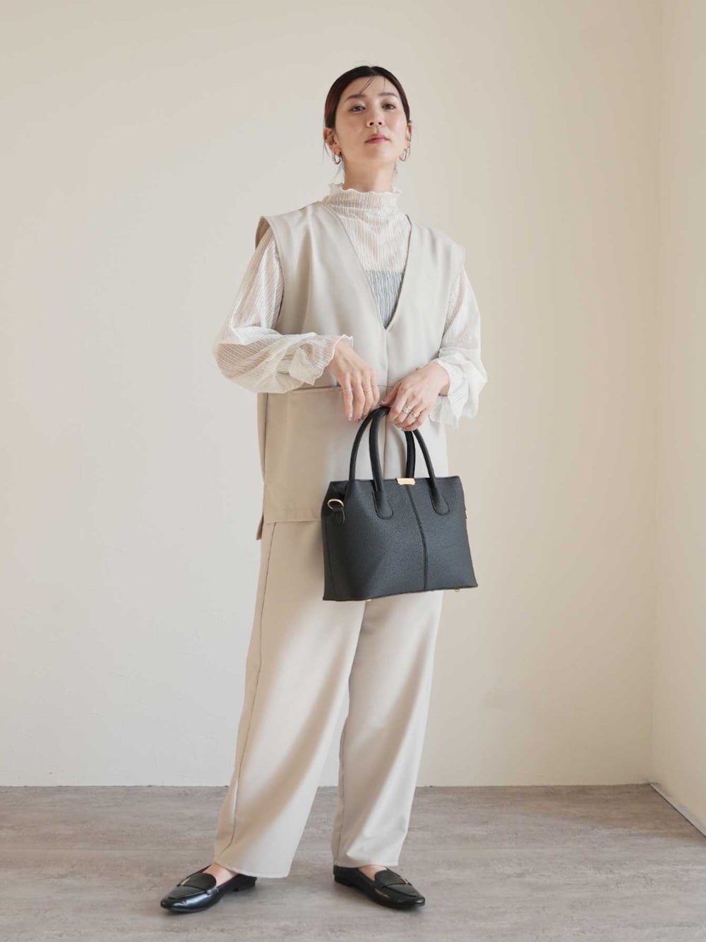 reca ▶Vネックベスト×カーブパンツ2点セット ▶ボトルネックシアーストライプブラウス(予約受付中) instagram📷 @reca.zozotown