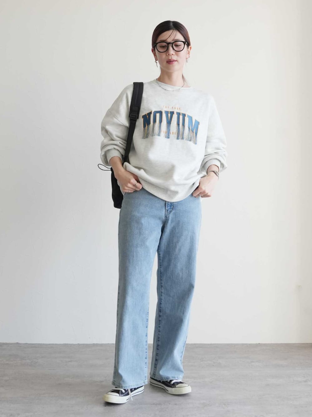 reca ▶フリンジロゴ刺繍BIGプルオーバー ▶飾り釦付き裏ゴムストレートデニムパンツ instagram @reca.zozotown