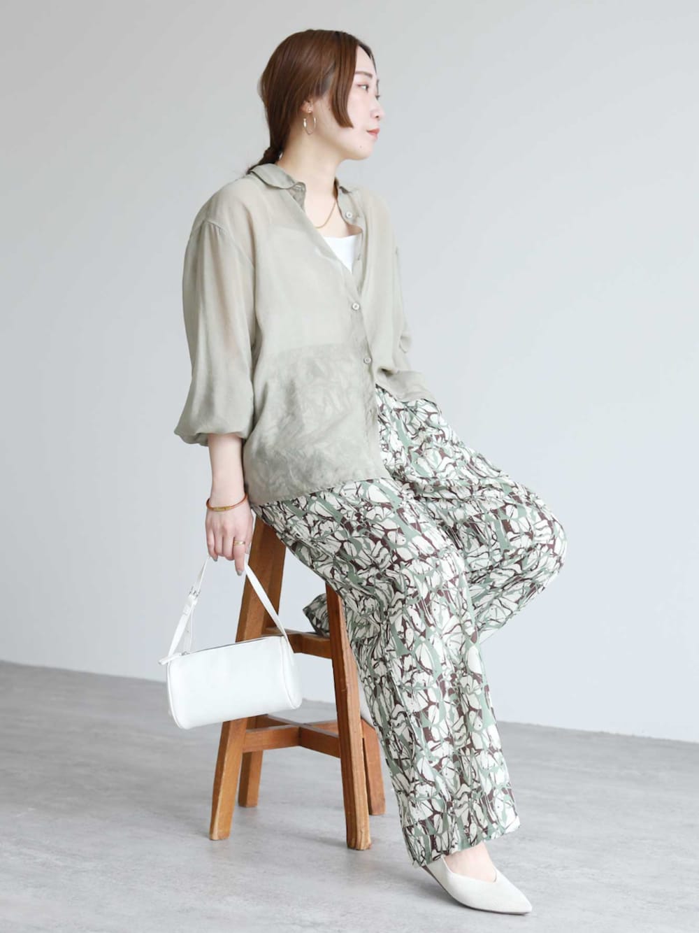 reca ▶シアーポプリンボリュームスリーブシャツ ▶ペイント柄イージーパンツ instagram @reca.zozotown