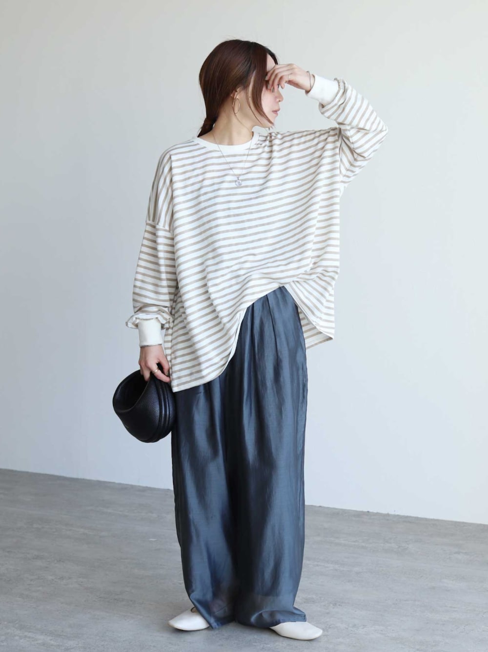reca ▶ゆったり体型カバー!ボーダー&無地オーバーサイズプルオーバー ▶シアーカーブパンツ instagram @reca.zozotown