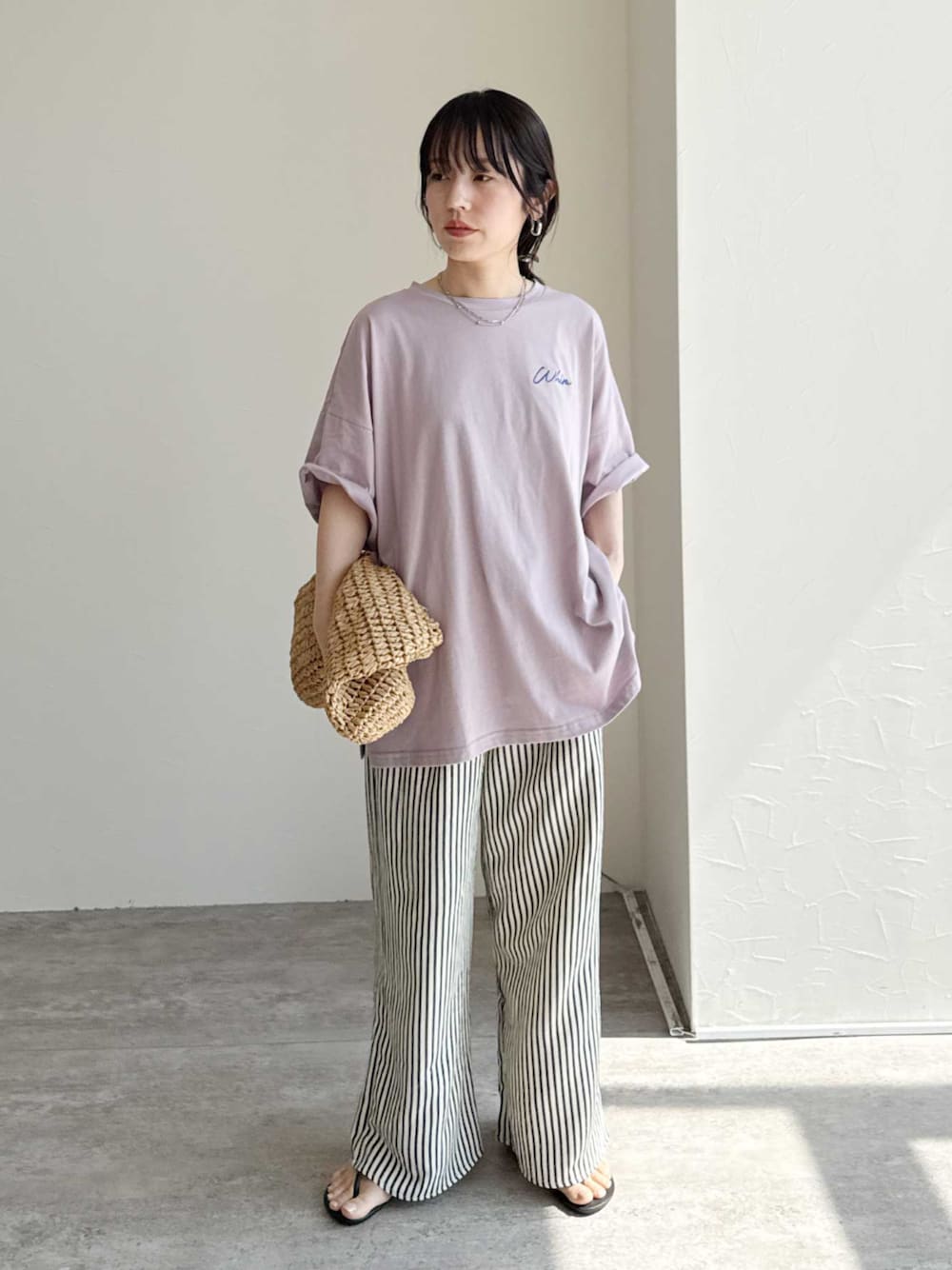 reca🌷 ▶ゆるロゴプリント&刺繍BIGTシャツ ▶無地/ストライプエンボス加工イージーパンツ instagram📷 @reca.zozotown
