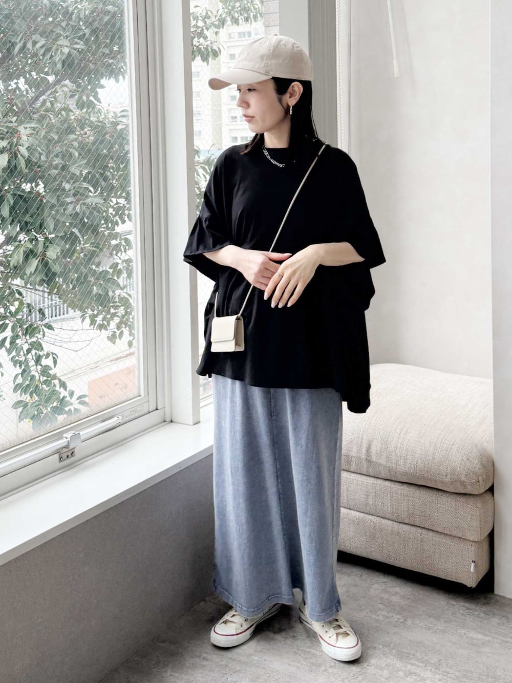recastaff(reca)のデニムスカート「ストレッチデニムスカート」を使ったコーディネート