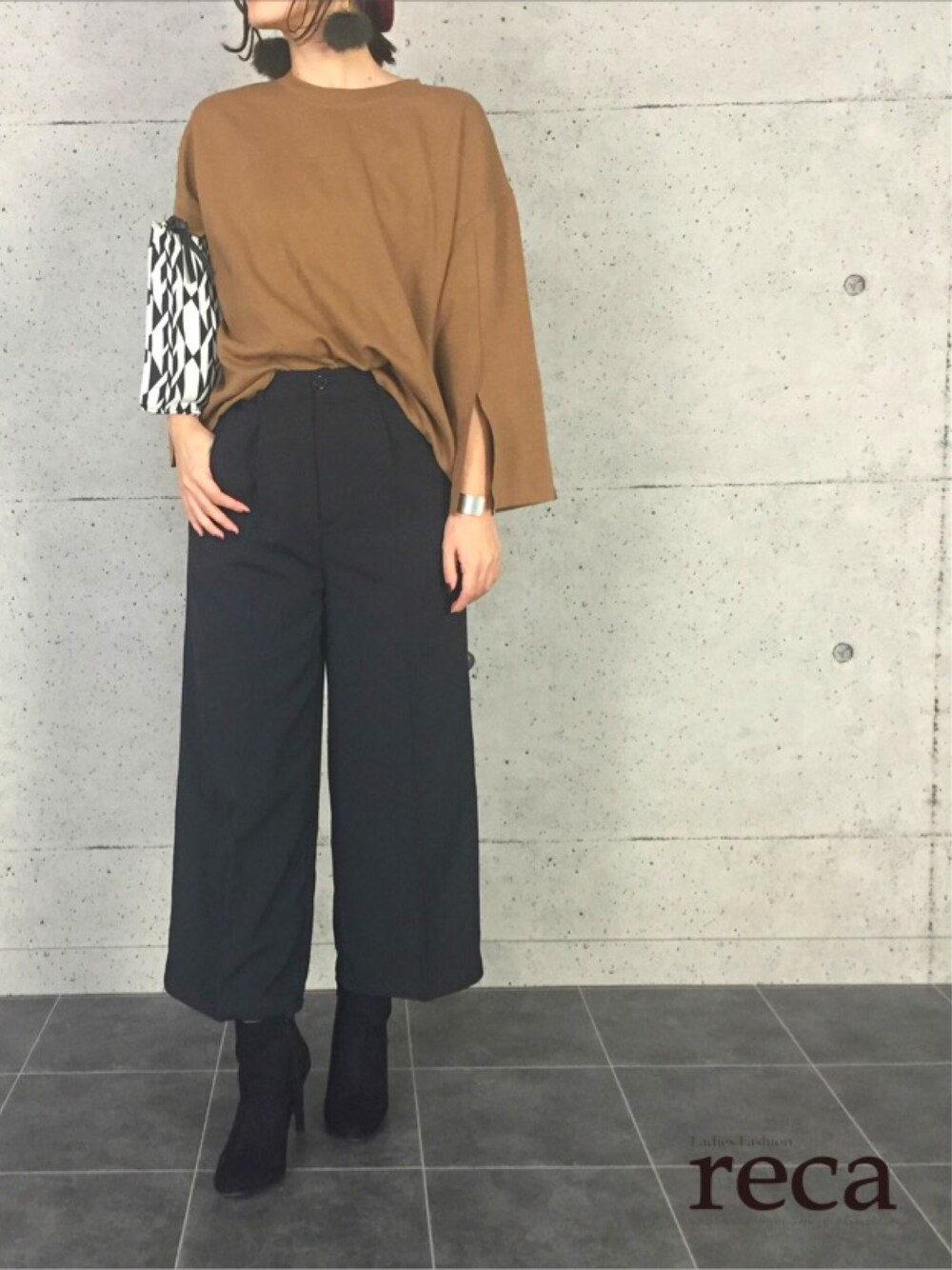 こんにちは😃 ご覧頂き、ありがとうございます💓 今日のstaff code✨ センタープレスのパンツに ブラウンの袖スリットカットソーを合わせました❣️ カットソーでも、ボトムの組み合わせ次第でキレイ目も作りやすいですよね😊👌🏻