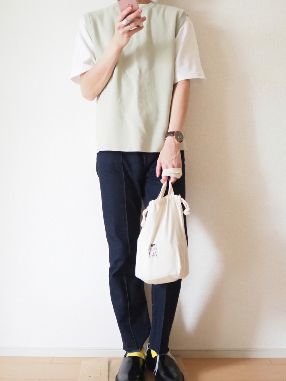 やすひろのTシャツ/カットソー「リネンミラノリブニットベスト」を使ったコーディネート