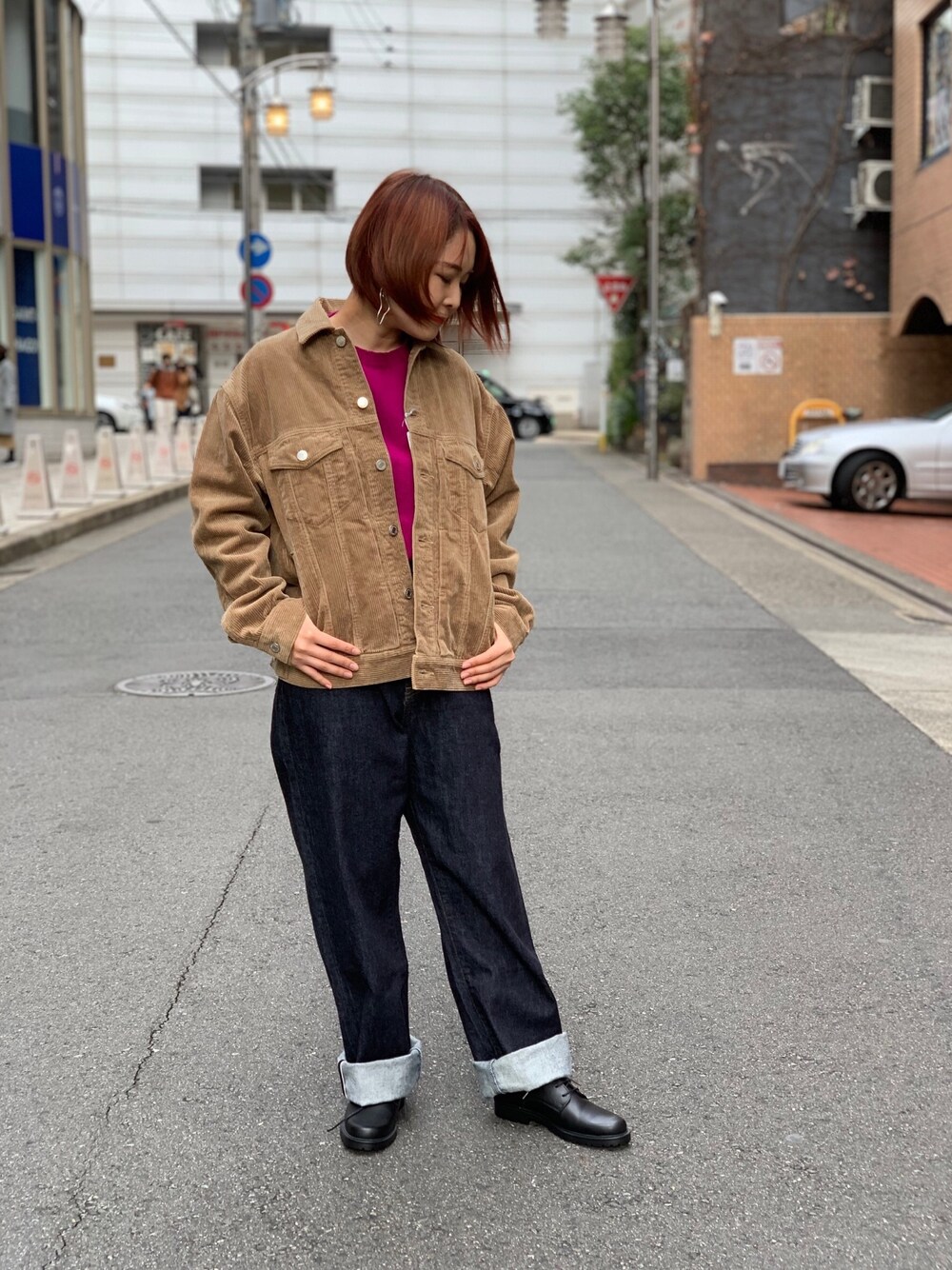urvinのコーデュロイジャケットにデニムを合わせたカジュアルコーデ✨