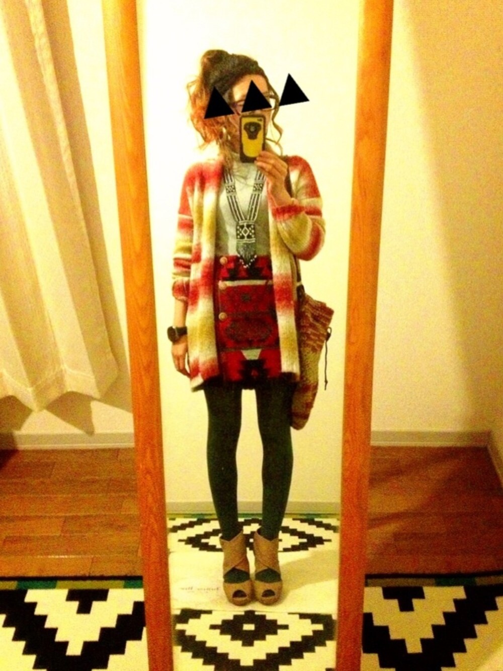 エスニック大スキです。 ほとんど着てるのがエスニック柄 なんじゃないかと思うくらい 大スキなんです。 だからガチャガチャしちゃうんです。 でも無地もスキなんです。 普段の反動で超シンプルなの 着たくなる時もあります。 今日は大スキなエスニックに 女のコらしさをプラスしました。 たまには女のコしなきゃ。 カーデ AZUL インナー UNIQLO スカート 古着 靴 ノーブランド 実はタイツは緑。 スカートはくと やっぱちっちゃくみえるなぁー…(-_-)
