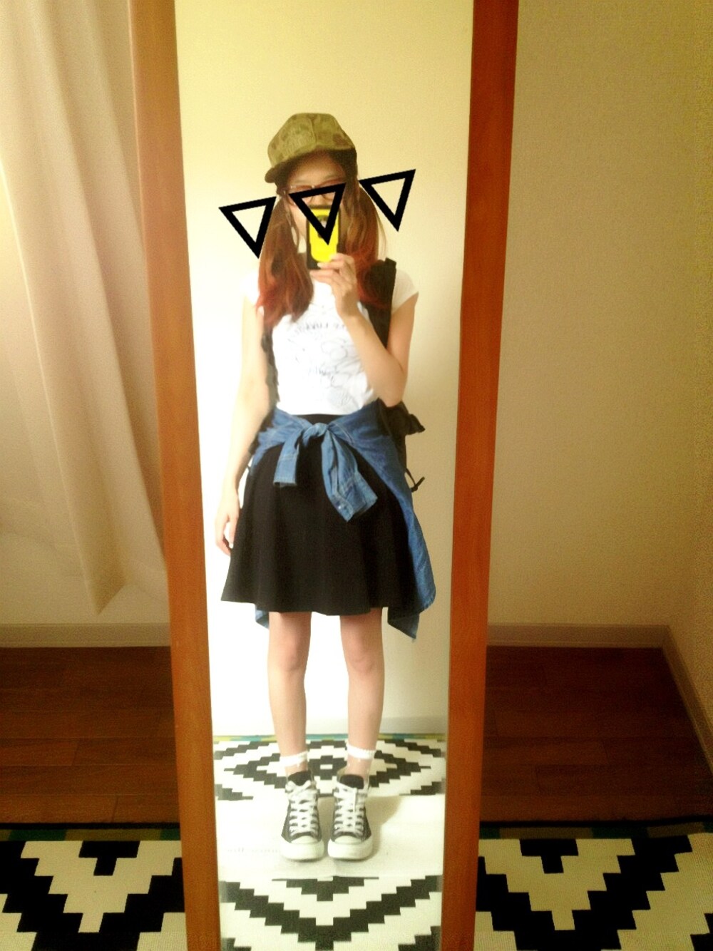 最近はリュック&キャップが ツボになってます。 ハマるとそればっかになっちゃう。 慣れないスカートは最近挑戦中です。