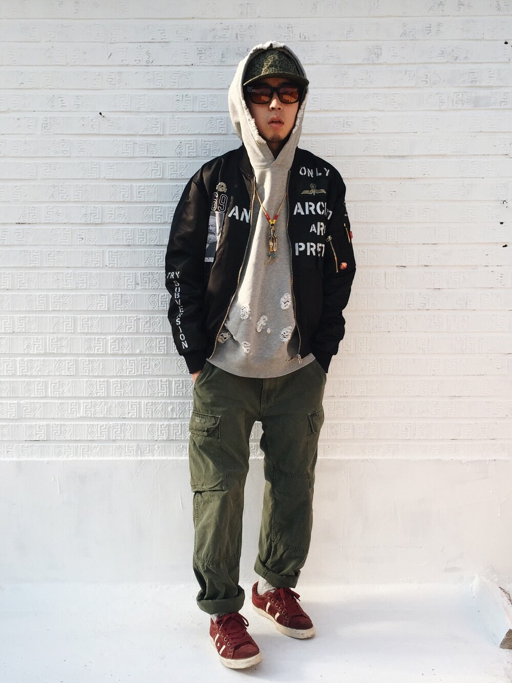 2015.10.16 Cap_#leata Sunglasses_#doublelovers Necklace_#goros Hoodie_#cavempt Jacket_#leata Pants_#wtaps Shoes_#cons