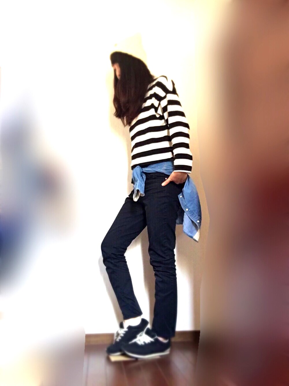 白背景のほうがやはり服が映えますね〜🙆🏻💗 髪の毛がぐっちゃぐちゃだったので 帽子被りました!頭あったかい! どこで買ったか忘れちゃったんですが New Yorkって文字が入ってるニット帽です🇺🇸 無印良品のスニーカーは インソールがもふもふしてて 大変歩きやすいのでオススメですᙏ̤̫