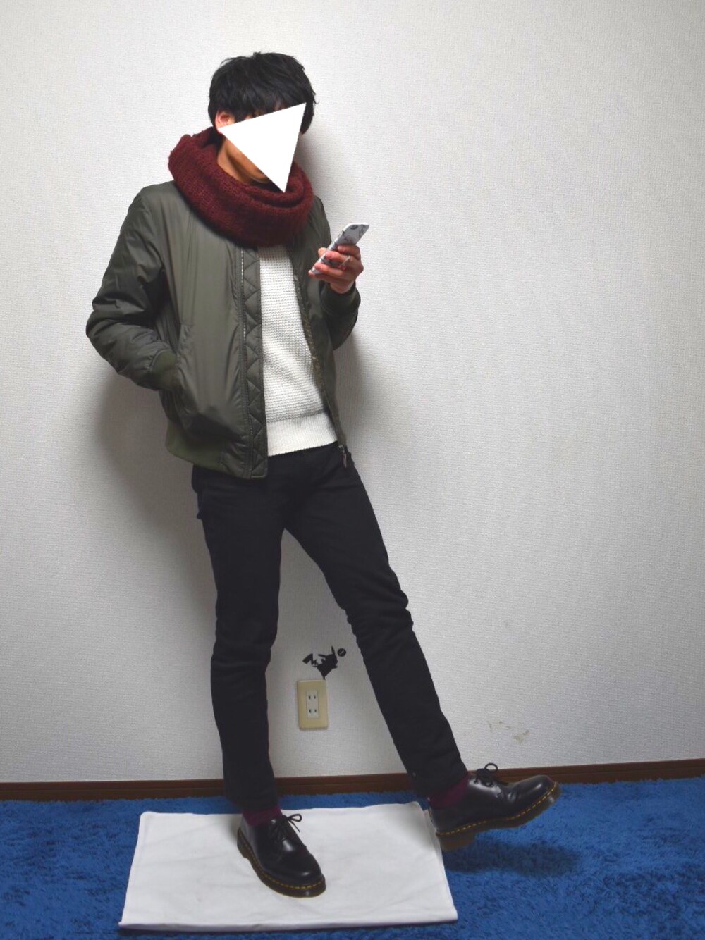 UNIQLOコーデ🎨🌷 . ma-1にワインレッドのスヌードと靴下💄 . ぬくぬく☺️