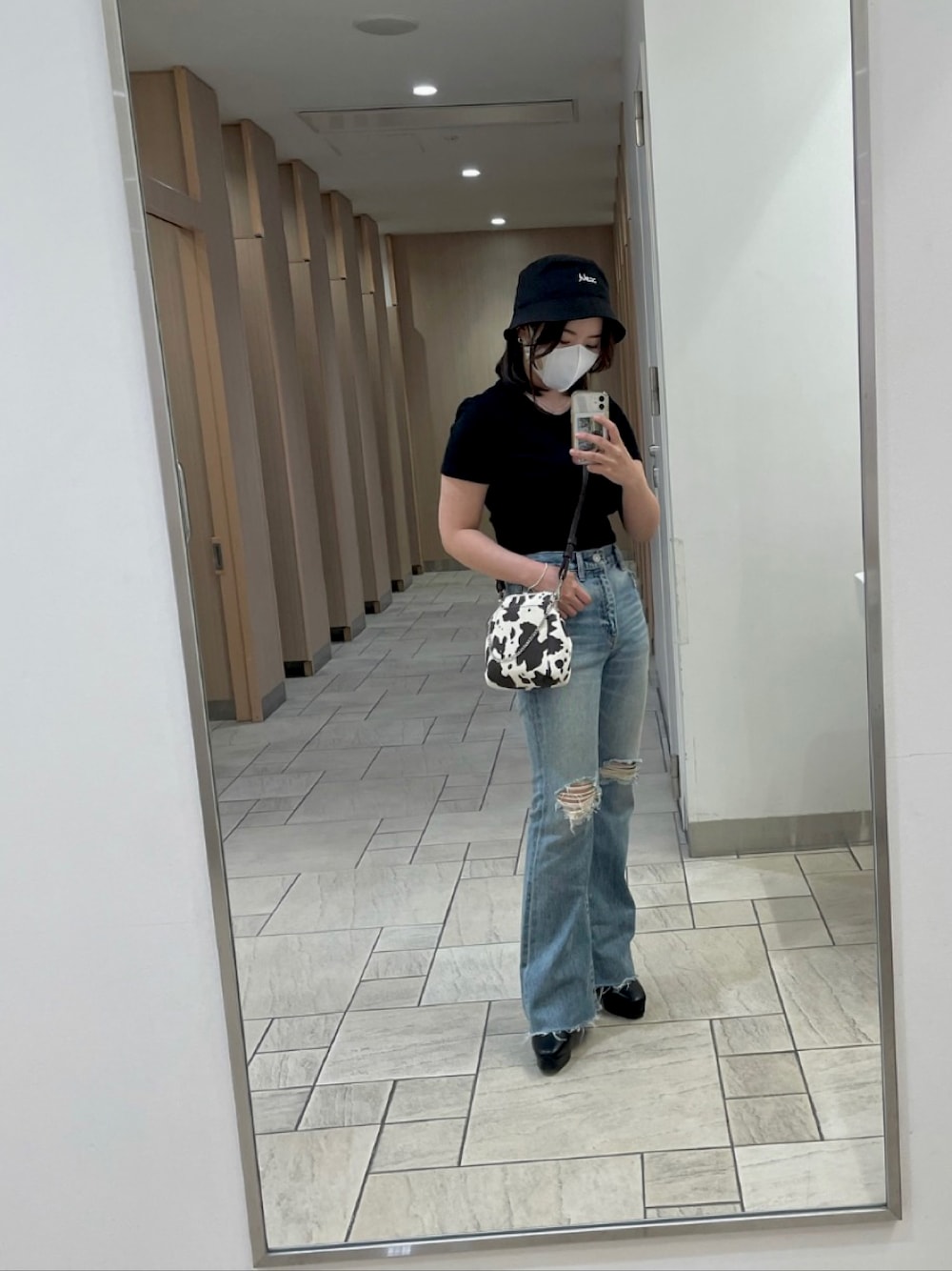 あかい すずのハット「EMBROIDERED MILLS LOGO BUCKET HAT」を使ったコーディネート