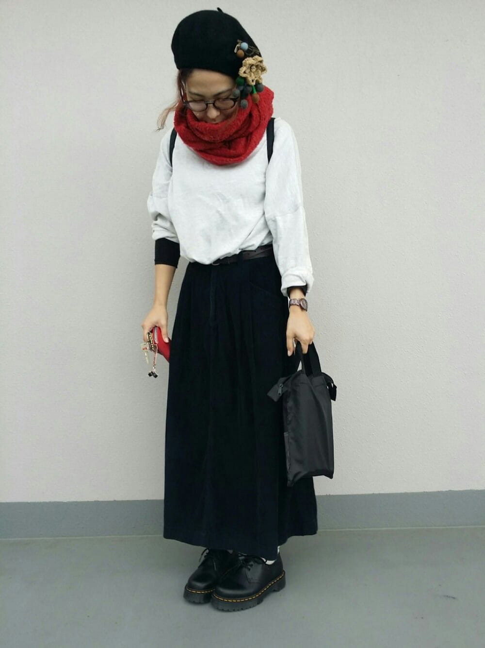 しゃおのハンチング/ベレー帽「ピン付きフェルトベレー」を使ったコーディネート