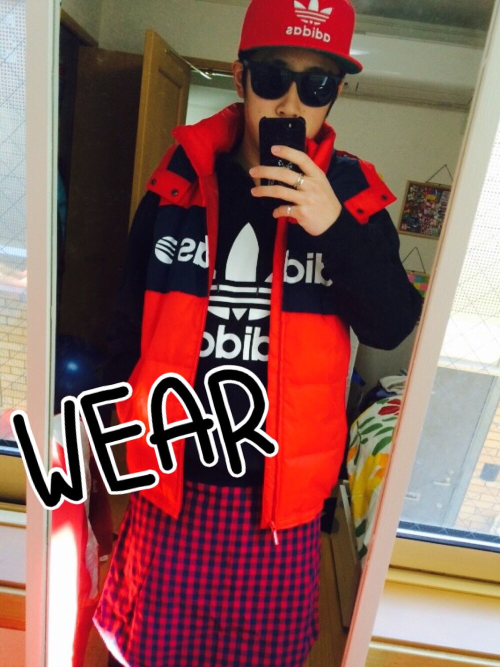 今回はadidasboyになりました😤 黒と赤で仕上がってます〜 ちなみにパーカーはオーストラリア、ダウンベストとキャップはハワイで買いました🌴🌴