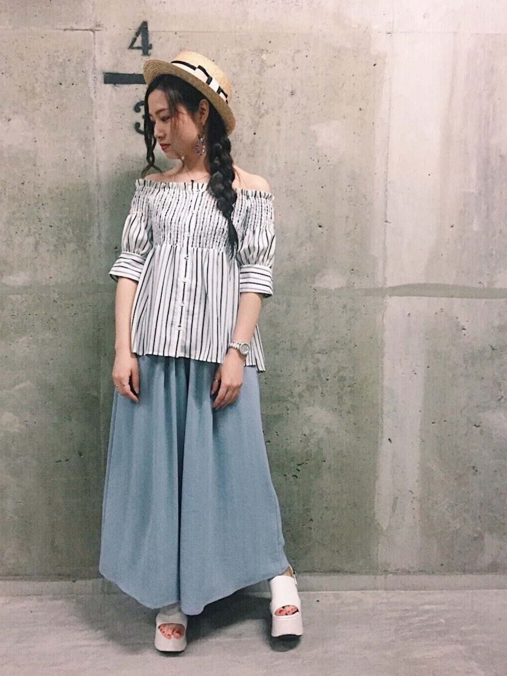 REDYAZELのシャツ/ブラウス「バックリボンシャーリングオフショルブラウス◆」を使ったコーディネート