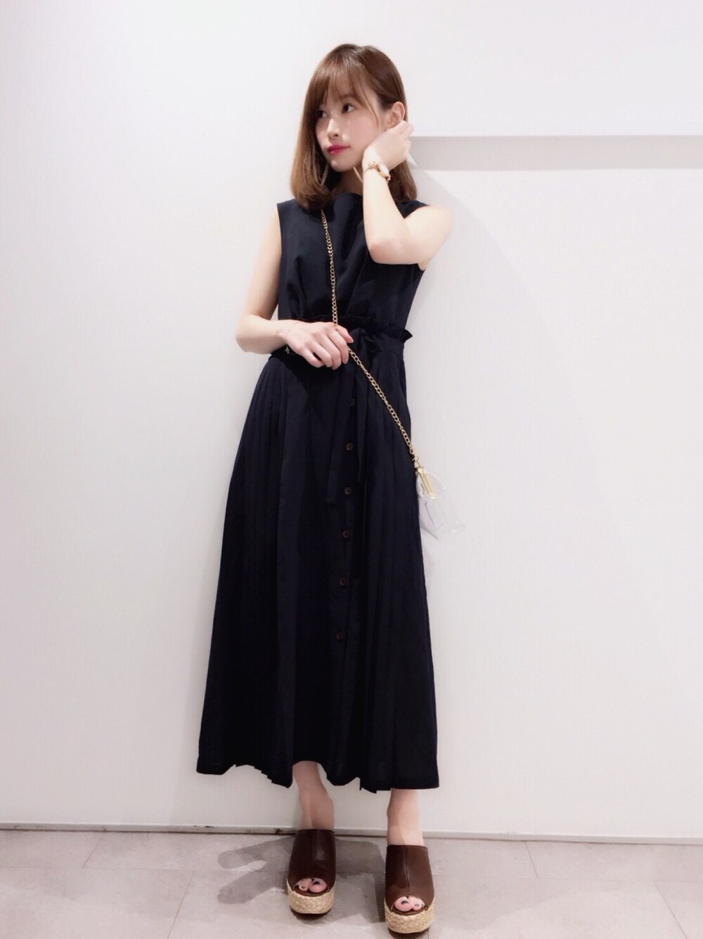 今から秋まで大活躍間違いなしのワンピ。 シンプルですが、プリーツデザインがPOINTのひとくせワンピ。 ハイウエストデザインで、自然とSTYLE UP◎