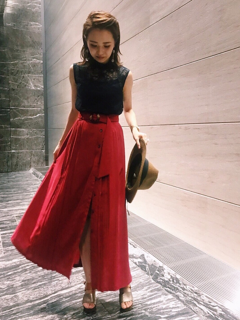 総レース×スリットスカート。 少し色っぽい綺麗めコーデ。