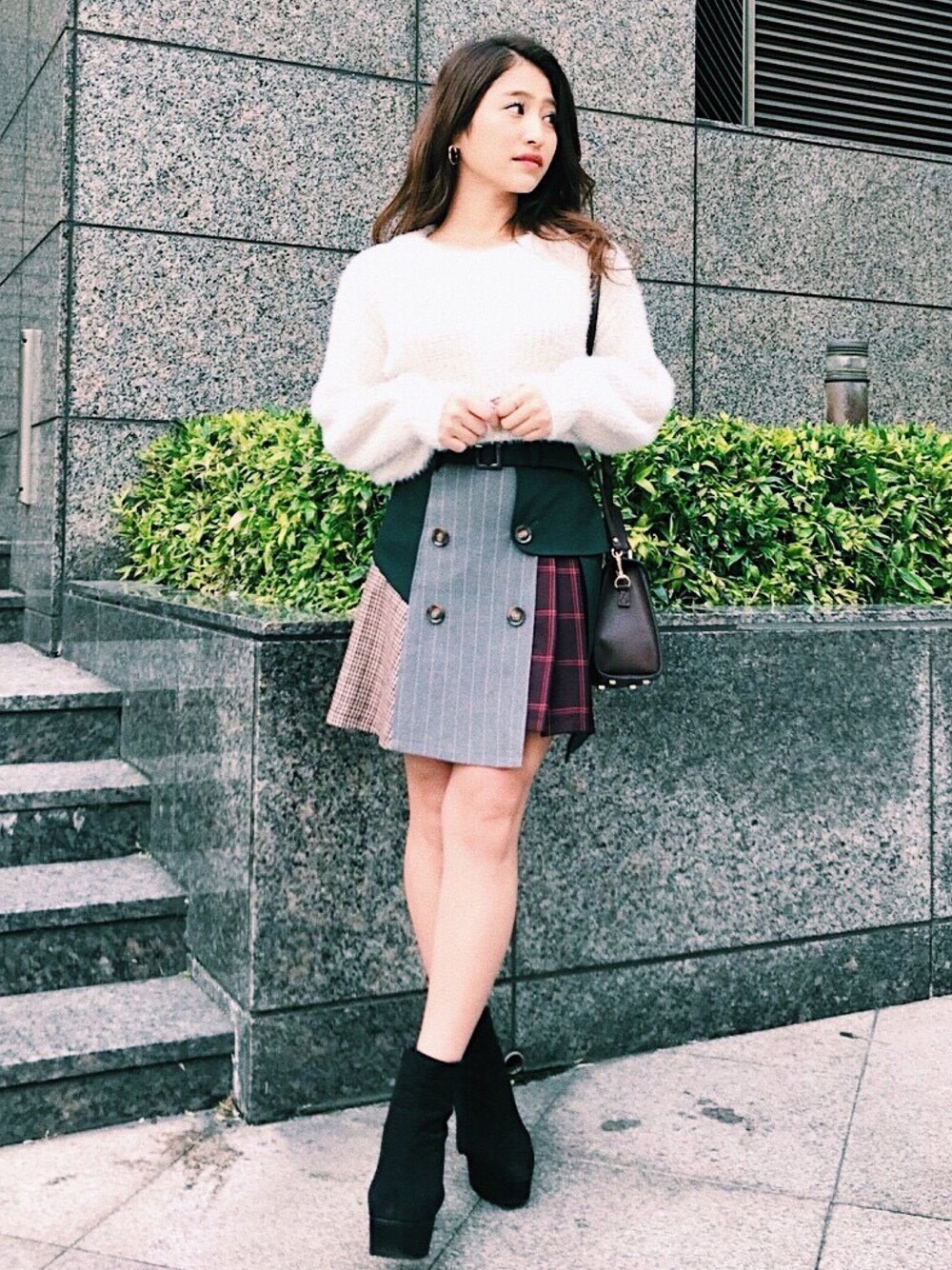 ふわふわラメニット×パッチワークミニスカート。 カジュアルかわいいコーデ。