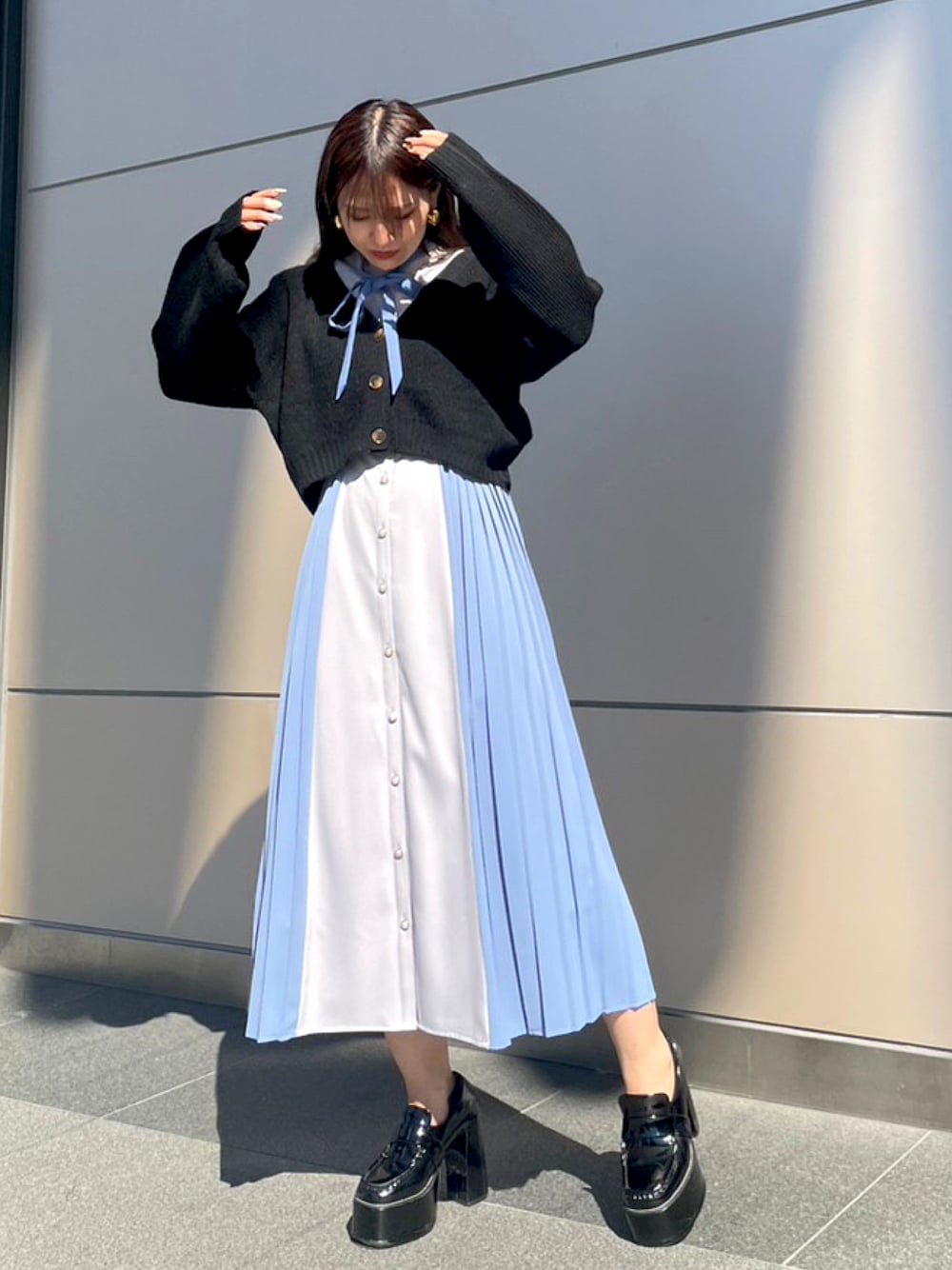 華やかで存在感溢れるワンピース✨ 🤍ONEPIECE REDYAZELで大人気のボウタイ×バイカラーのワンピースが登場✨ 着ているだけで存在感溢れる1枚になっており、歩く度に揺れるプリーツは特別感溢れます。 ウエストはゴムになっており、ストレスなく着れるデザインです。 特別な日にピッタリな1枚です。 🤍CARDIGAN 1枚持っていれば安心のカーディガン✨ 畔のニットなので優しい生地感と着やすさ抜群の1枚。 ゆったり着ていただけるので、何に合わせても大丈夫です✨