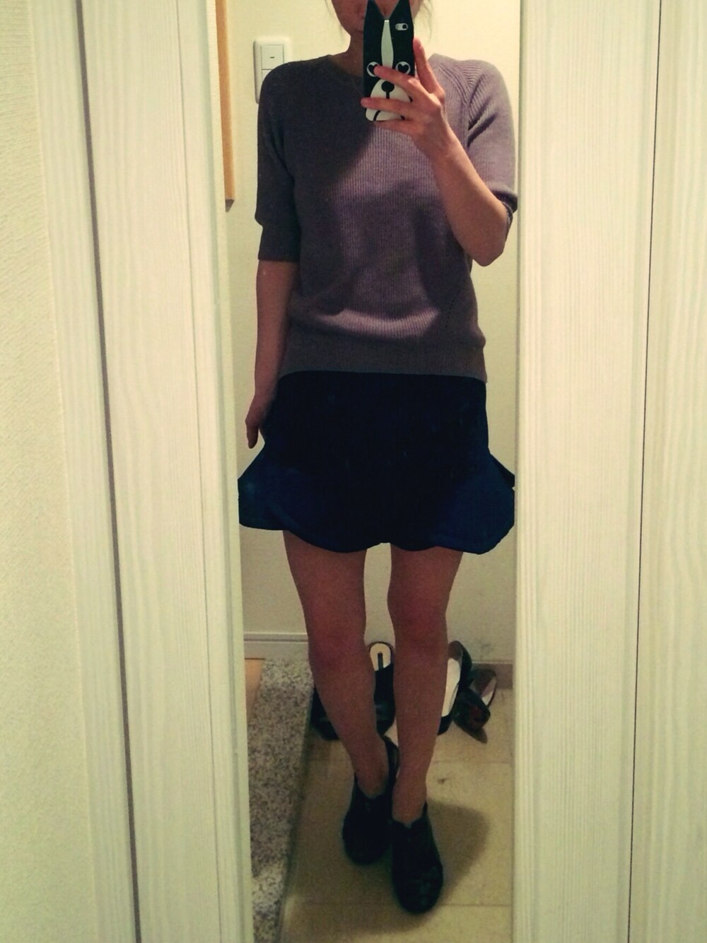 ブラック系のスカートを着用したレディースの春コーディネートの1枚目の写真