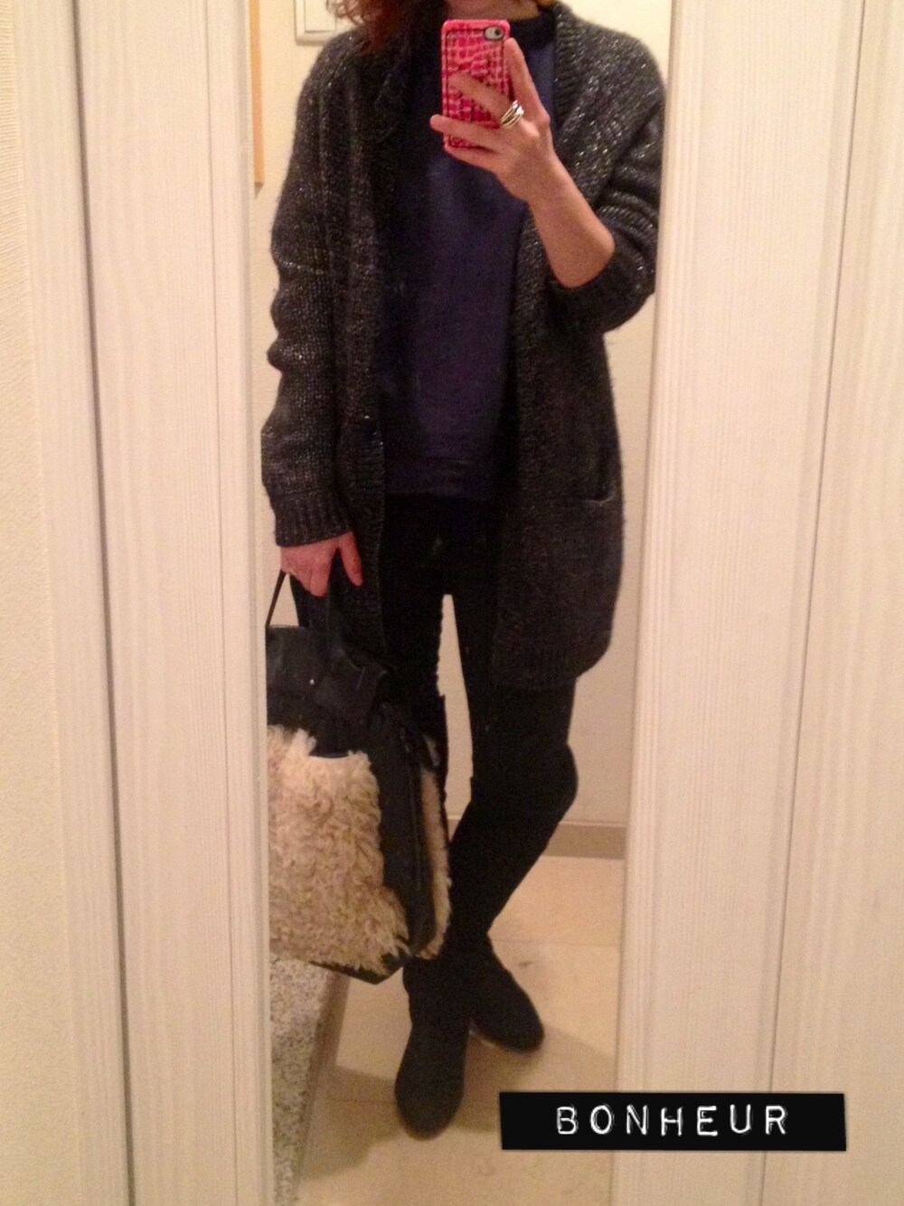 ブラック系のブーツを着用したレディースの冬コーディネートの1枚目の写真