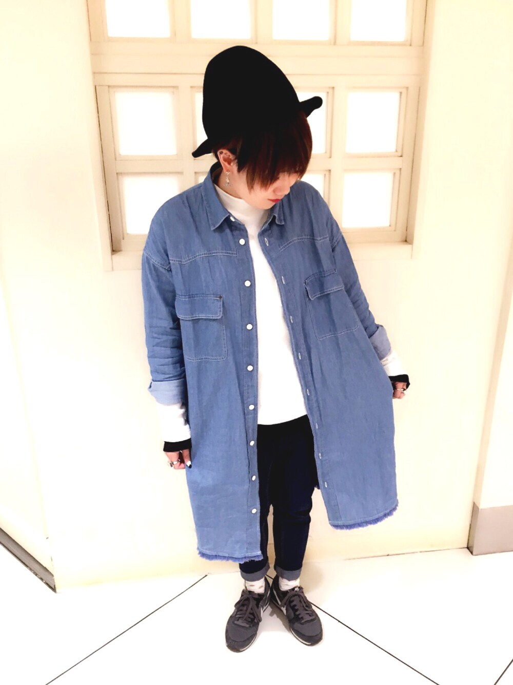 フシミのシャツワンピース「デニムシャツワンピース」を使ったコーディネート