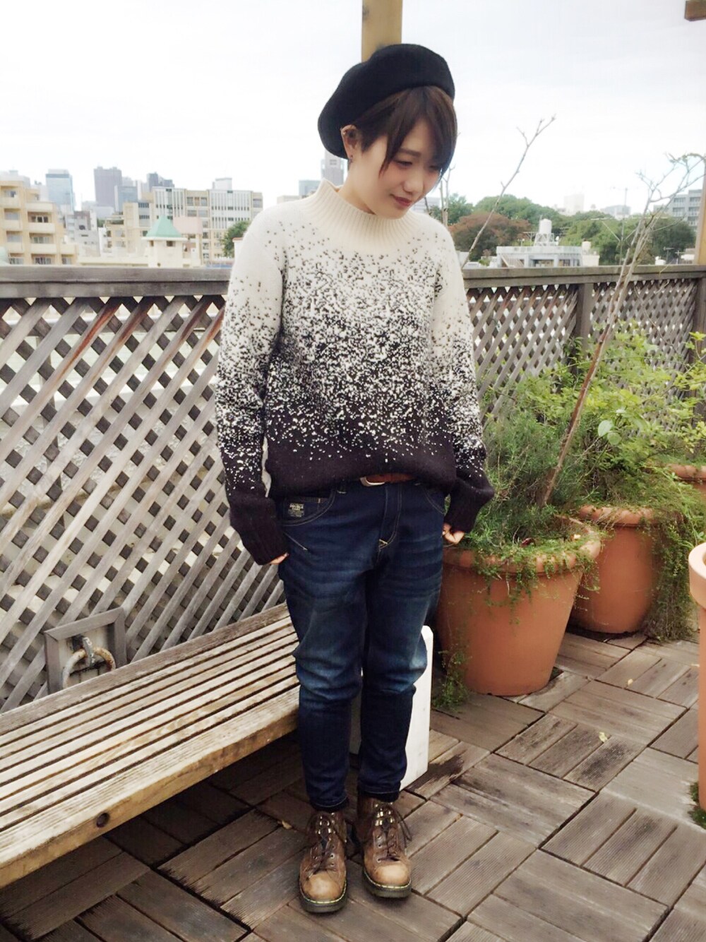 こんにちはー! リアルコーデです🙋🏻✨ ニットがチクチクしないのでオススメ! そして裏起毛のデニムスリムサルエルパンツはとても暖かいのてひとつあると便利ですよ٩( ˘͜ ˘ )ว 冷え性なフシミンには必須⚠️ 店頭で試着もできますよ〜い☺️🙌🏻💓
