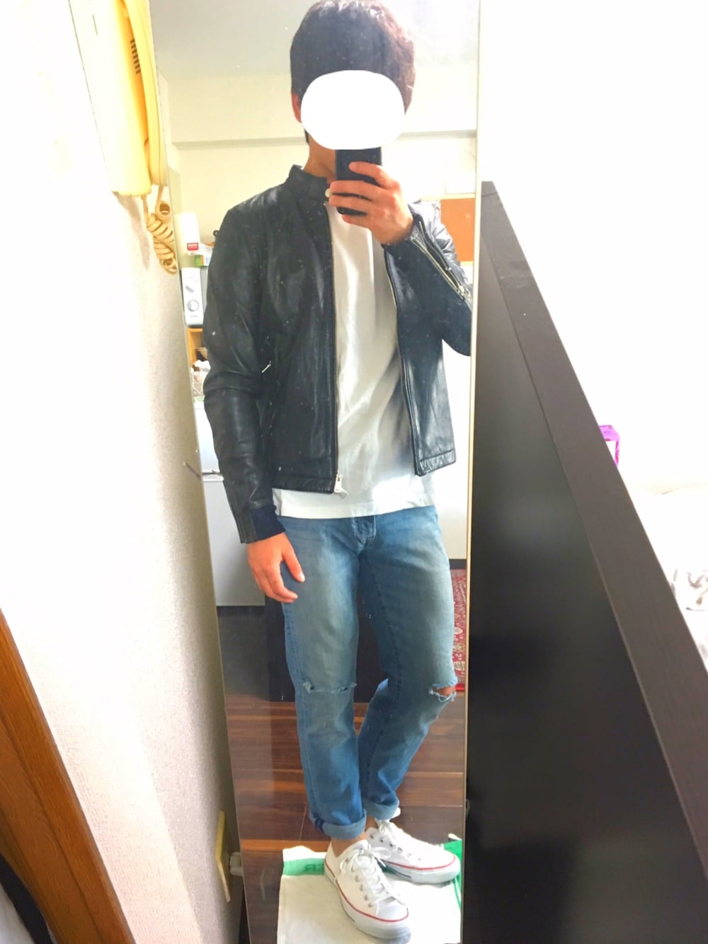ご覧頂きありがとうございます。 カジュアルコーデです。 ライダースジャケットにクラッシュデニムを合わせ無骨かつ、シンプルに仕上げました。 今日はこんな感じです。