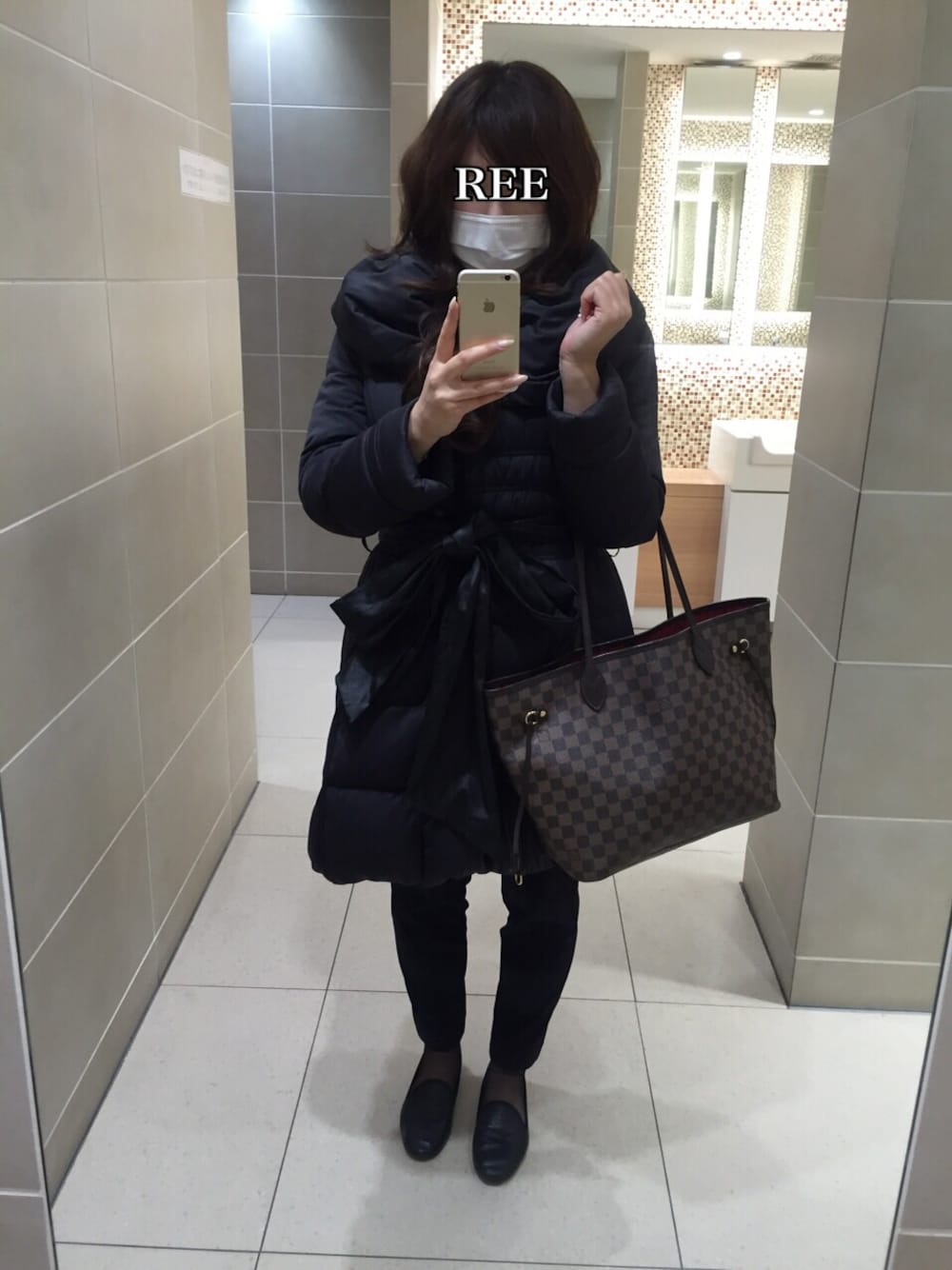出勤前バタバタで、気がついたら全身blackでした。わかりずらいですが、ウエスト部分の大きなリボンがPointで、イメージとしては着物の帯のようになっていて、ウエスト位置で結ぶデザインになっています。お気に入りで、私の冬の定番コートです☺︎