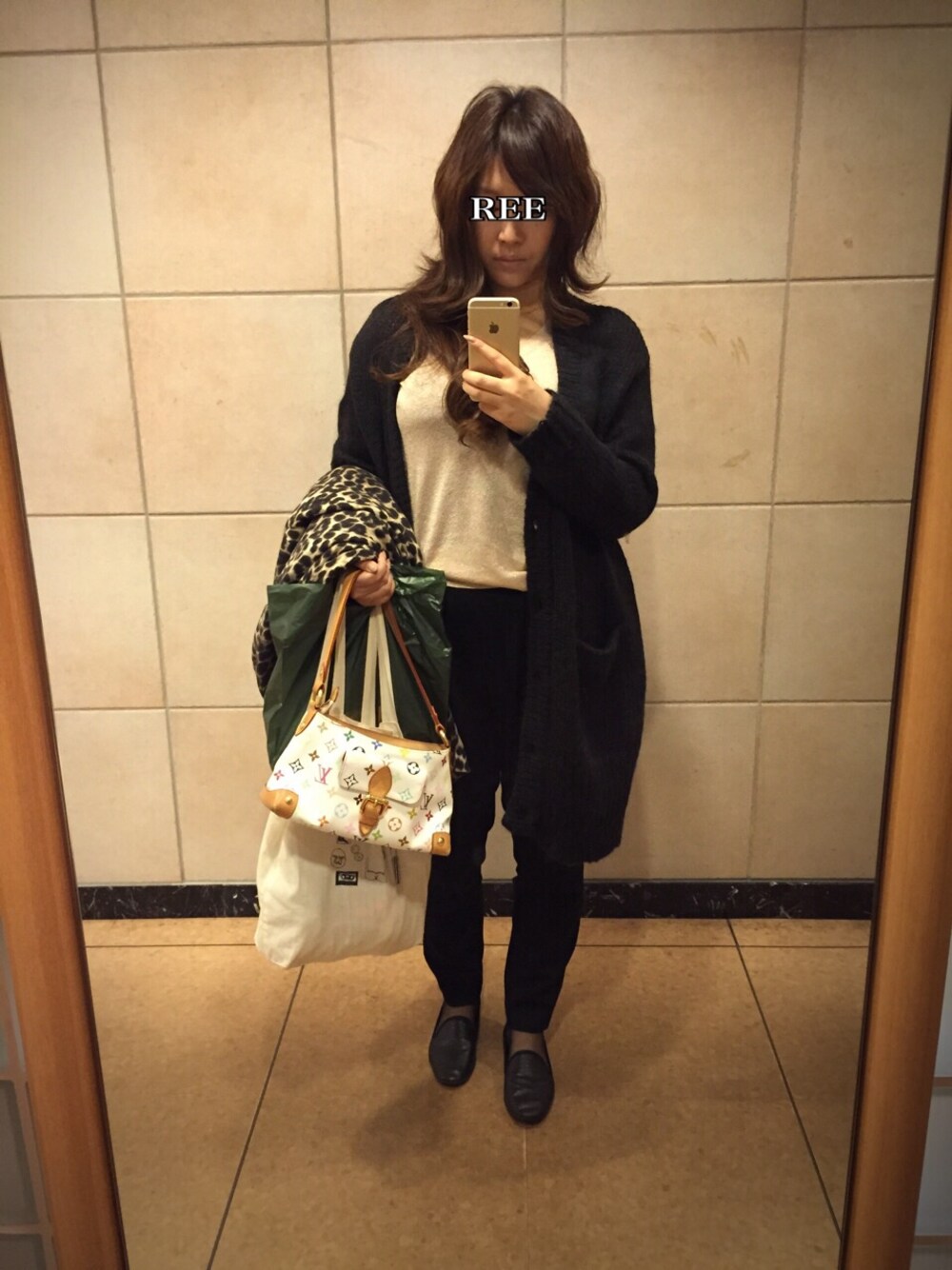 REEのノーカラージャケット「レオパード柄コート☺︎」を使ったコーディネート