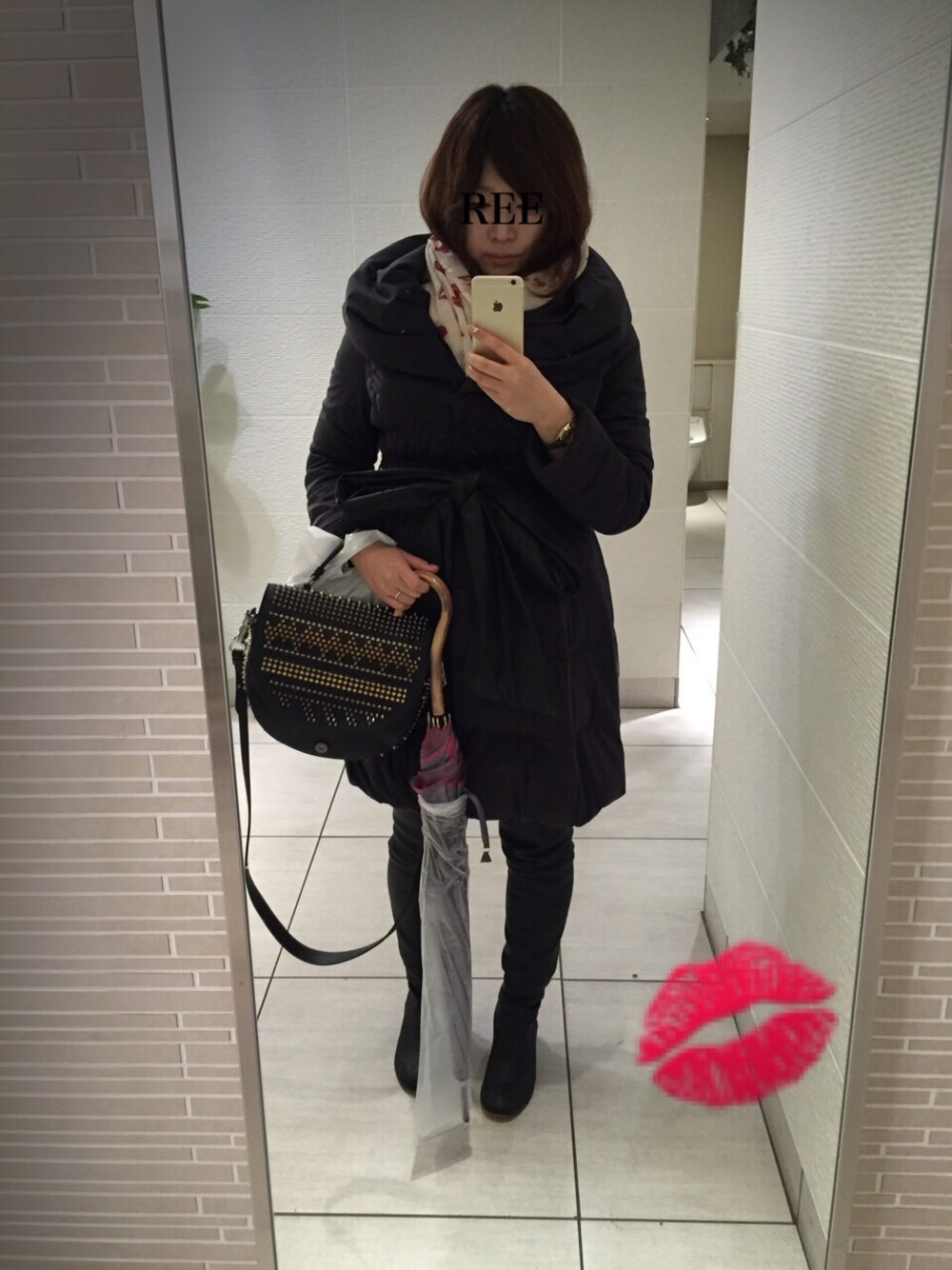 コートの上からだといつも同じような格好になってしまって反省です。。。 今日は雨でとっても寒かったので、大好きなlip柄のストールを巻きました。遠くから見ると水玉みたいに見えますが、可愛い💋がいっぱいです☺︎