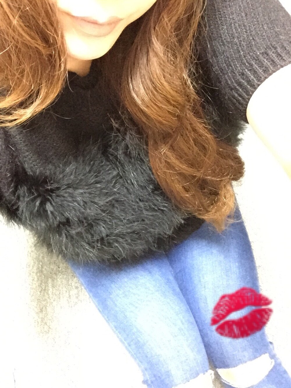 今日はお気に入りのフェザートップスと膝穴開きデニムでした☺︎