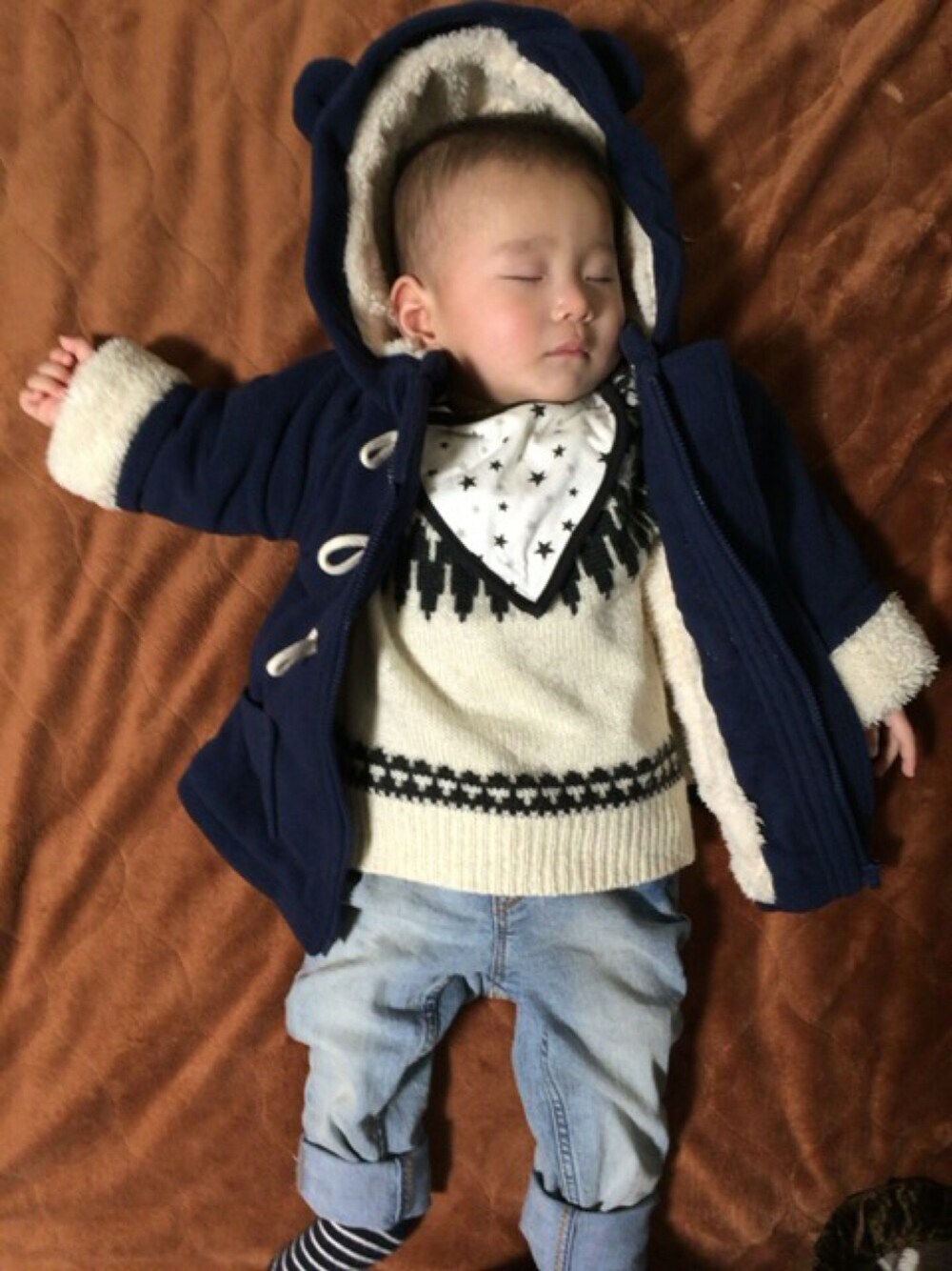 パパと3人でアウトレット行ってきた〜⛄️ 収獲なしでした😂 帰りの車で爆睡の息子くん♡ 明日は息子のいとこ君が帰省してくる〜♡ 4ヶ月のいとこ君大きくなったかな〜👶🏻💕
