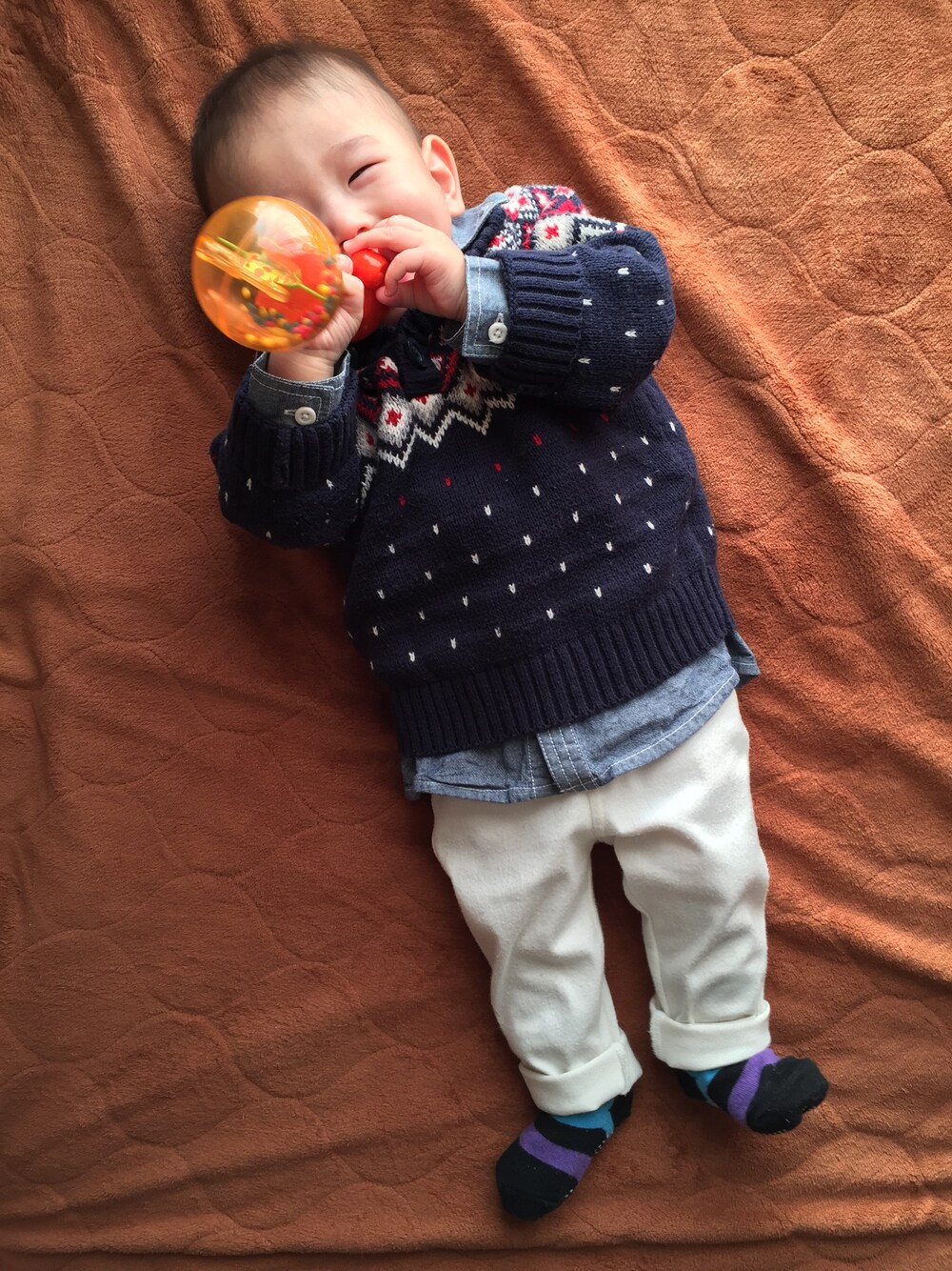 22:30🕥やっと寝てくれた😂💓 眠くてぐずる⇨抱っこ⇨割と早く寝る⇨少しして急に泣きだして起きる⇨抱っこ1時間⇨降ろすと起きる⇨抱っこ⇨降ろすと起きる⇨放置⇨オモチャで遊ぶ⇨眠いの思い出してぐずる⇨抱っこ⇨お目目パッチリ(謎)⇨仕方ないから添乳⇨やっと寝た😭 ほんとーに疲れた〜😂 朝まで寝てくれー😞 抱っこか添乳じゃないと寝れない息子くん いつになったら抱っこ無しになるのやら😂 腕もぎれそう😭😭😭