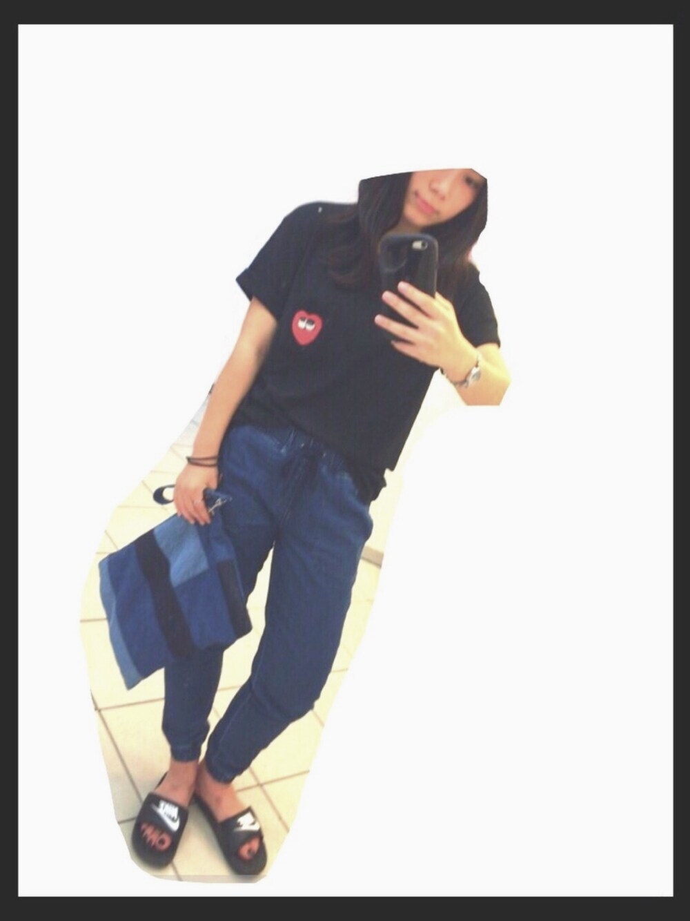 夏の出勤コーデでお出かけ🎈 9月からは制服変更で秋服出勤です〜 後々アップしていきます😊 カウズとコラボUT デニムジョガーパンツ パンツはまだお店で販売してます、ぜひ💓