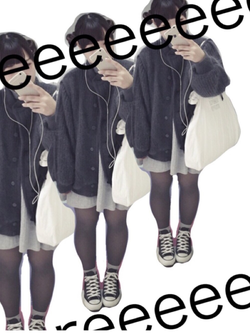 グレー系のスニーカーを着用したレディースの冬コーディネートの1枚目の写真