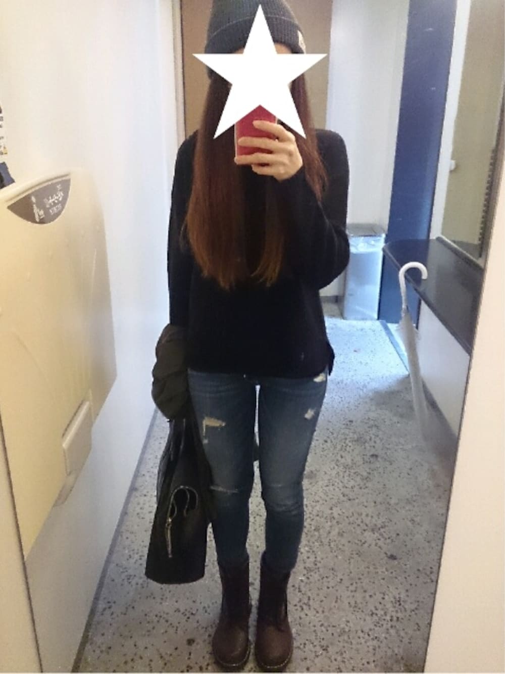 knit hat:BEAMS knit:ZARA denim:hollister rain boots:Dr.Martens