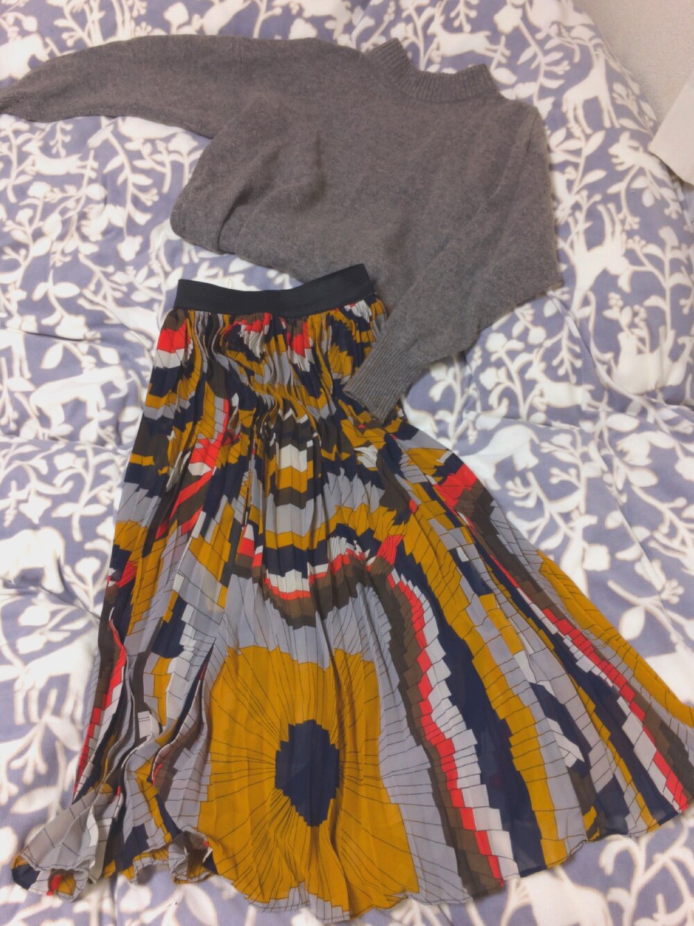 スカート:柄がものすごく可愛いスカート!裏地もついてるので透けない😌 ちょっと生地が薄めなので冬はロングコートを着たほうが🙆♀️