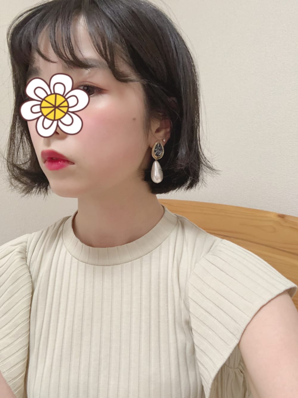 シンプルなワンピースだったので 大ぶりのピアス。🌼 全身撮れなかったのですが、 ロング丈のワンピースで、 ぴちっとしすぎてないので着やすい。 1年で9キロダイエットして(食事制限なし) 結構腕が見える服も着られるようになりました笑