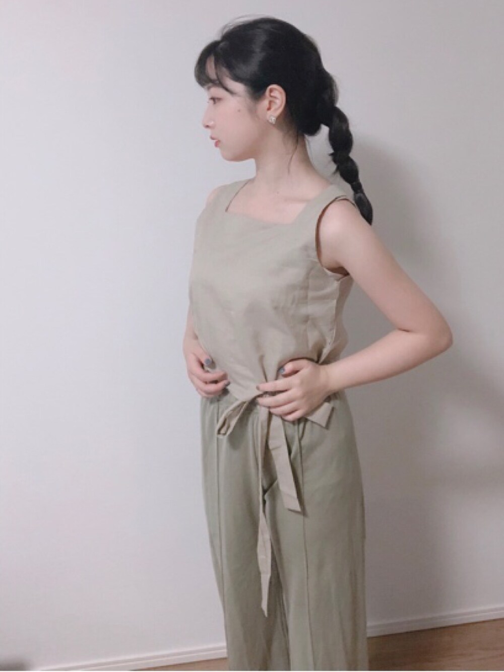 fifthのトップス🌱 ほんとは前後逆で くしゅくしゅとなっているところが前に来るのですが、 あえて後ろ前逆で着てみました! 涼しげなコーディネートにしました🎐 パンツは韓国で買ったものです! 夏らしく、梅雨でも気にならないように 編み込み風のヘアスタイルに合わせました!
