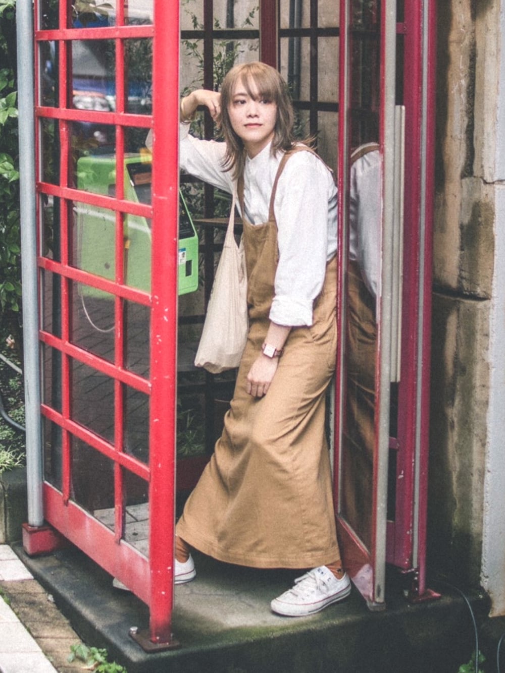 Renのサロペット/オーバーオール「太畝コーデュロイサロペット[プラスサイズ]」を使ったコーディネート