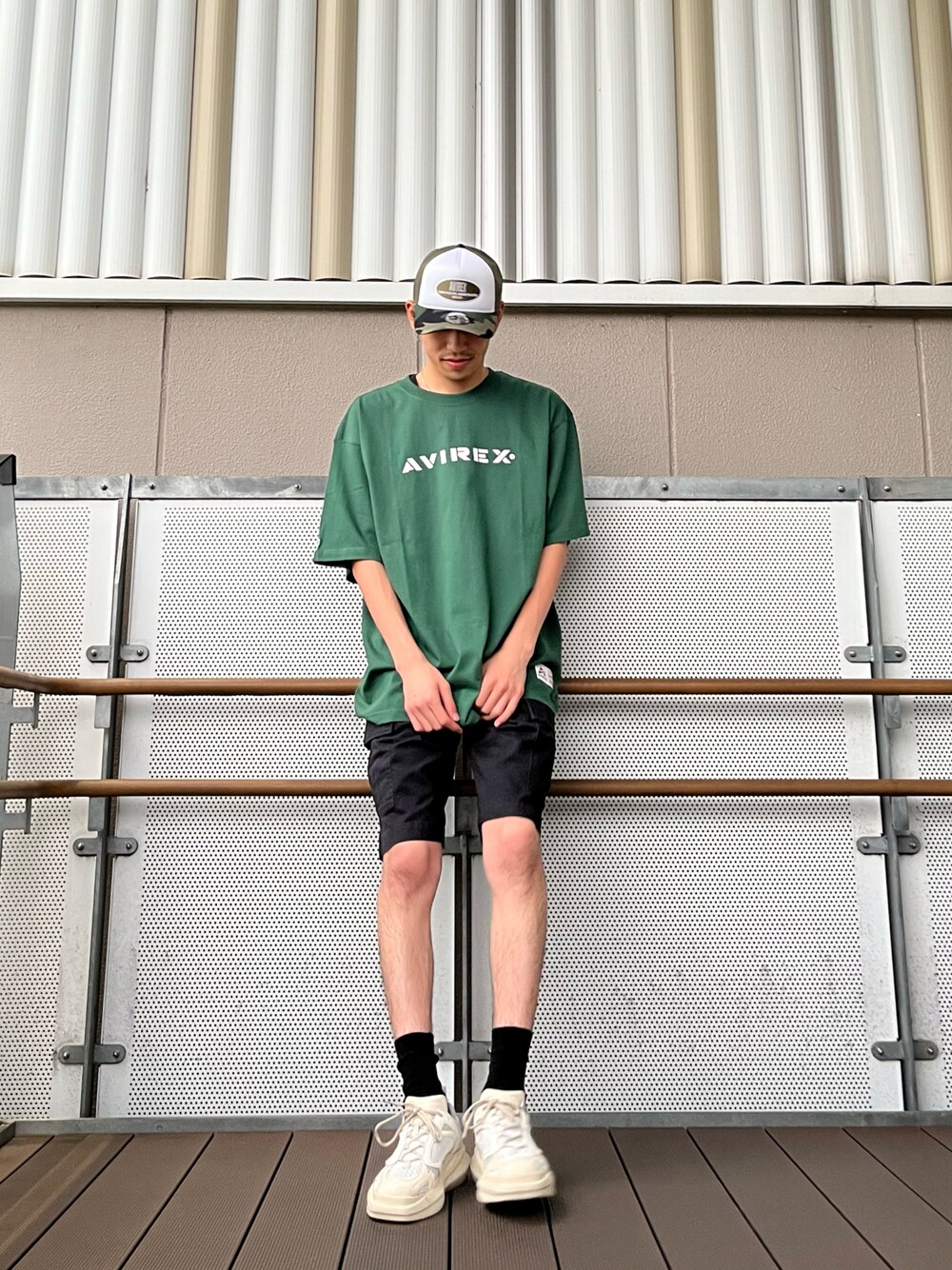 REN(AVIREXコクーンシティー)のキャップ「【NEW ERA × AVIREX】ワッペン メッシュ キャップ / WAPPEN MESH CAP / アヴィレックス / AVIREX」を使ったコーディネート