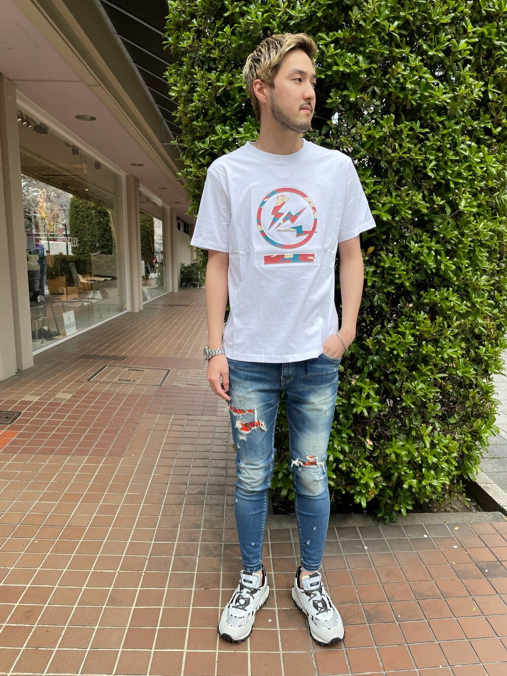Ren(B'2nd 相鉄ジョイナス店)のTシャツ/カットソー「qwerty (クワーティ) Circle Emboss Hide Como Tシャツ」を使ったコーディネート