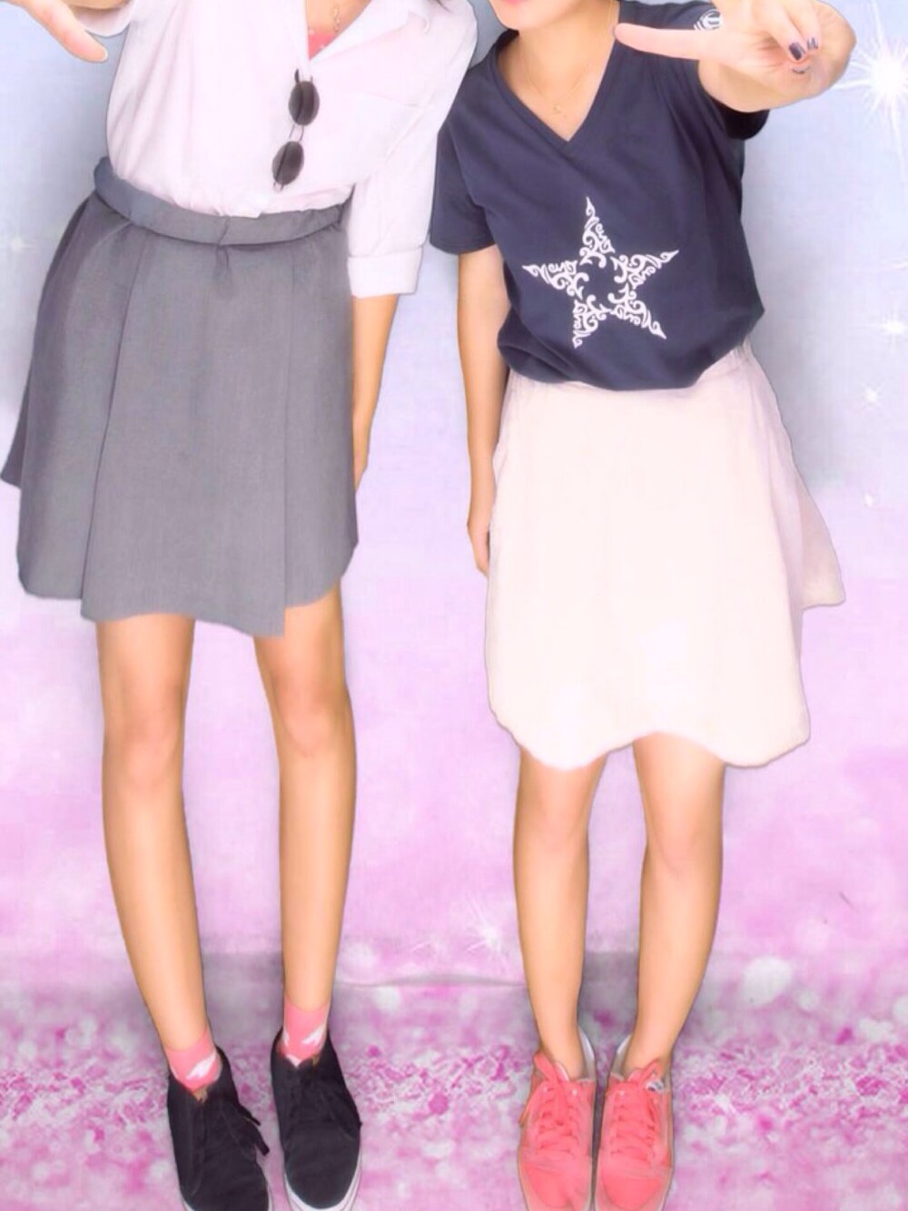 Vネックに星のプリントお気に入りです。 紺と白でモノトーンにしながらも、ピンクの靴を差し色にしています。 スニーカーでスポーティにしました。