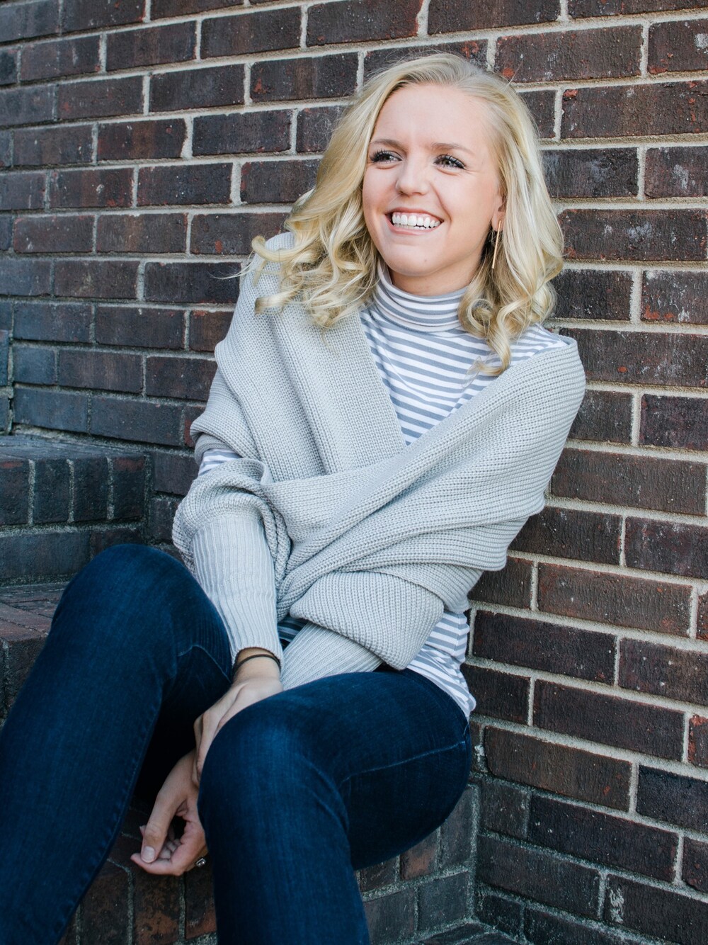 Layering up with this cozy wrap sweater and stripe turtleneck. Love the mix of the sweater silhouette and the stripe pattern to break up a monochromatic outfit.