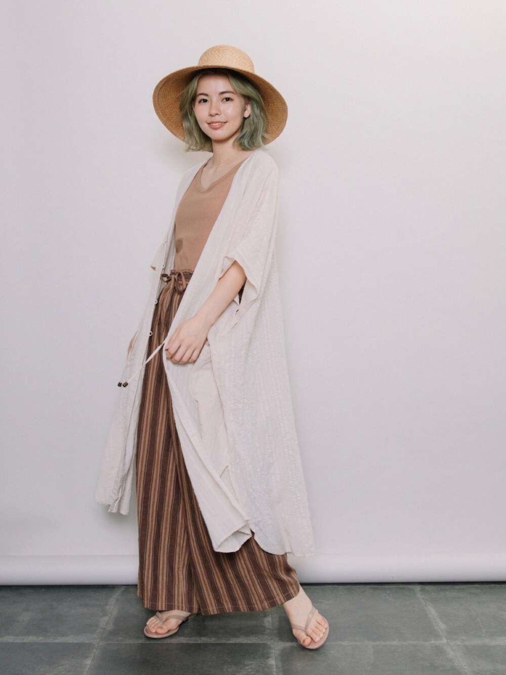 リファインドワークス 7月展開スタート商品のご紹介✨💞 麦わら帽子を使って夏コーデ🏖 トレンドのカフタンのはおり ストライプ柄のイージーワイドパンツ💐 フォロー宜しくお願いします🔰
